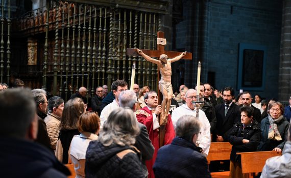 La Catedral de Ávila ha celebrado este Viernes Santo, a las cinco de la tarde, los Santos Oficios de la Pasión del Señor, en una liturgia marcada por el silencio, la sobriedad y la contemplación del misterio de la cruz. La celebración ha comenzado en completo silencio, con el altar desnudo, signo de que en […]