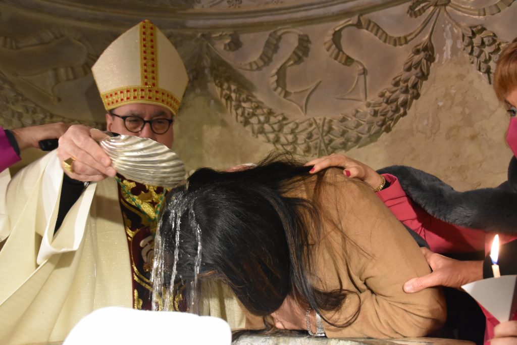 Durante el transcurso de la Vigilia, se ha celebrado el Sacramento del Bautismo a dos catecúmenas, que por el agua entran a formar parte de la familia de la Iglesia que camina unida. La pila bautismal de Vasco de la Zarza acogía este bello y sencillo acto, emocionante tanto para los catecúmenos como para sus familias. Tras ello, ambas bautizadas recibían también el Sacramento de la Confirmación, junto con una tercera. Todas ellas acompañadas de los fieles, que con sus velas les acogían en el seno de la Iglesia.