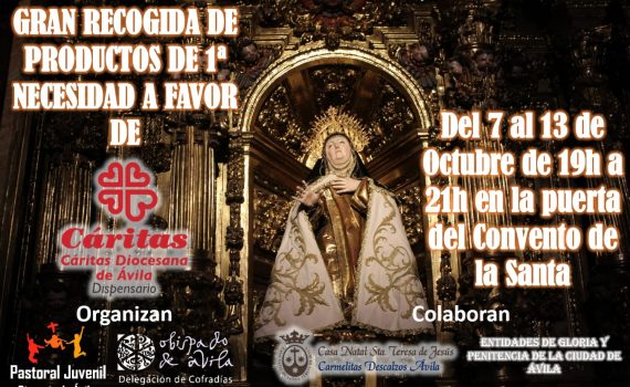 Por segundo año consecutivo, los jóvenes cofrades organizan una recogida de productos de primera necesidad que se destinarán al dispensario de Cáritas Diocesana. De esta manera, todos aquellos que acudan a la novena de la Santa (del 7 al 13 de octubre) podrán llevar su aportación a la puerta del convento de los Padres Carmelitas, […]