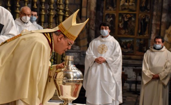 Más de un centenar de sacerdotes de toda la diócesis han participado esta mañana en la Santa Misa Crismal, celebrada en la Catedral del Salvador. Una celebración en la que los presbíteros han renovado sus promesas sacerdotales y nuestro obispo D. José María ha consagrado los sagrados óleos. Junto a ´él en el altar, concelebraban […]