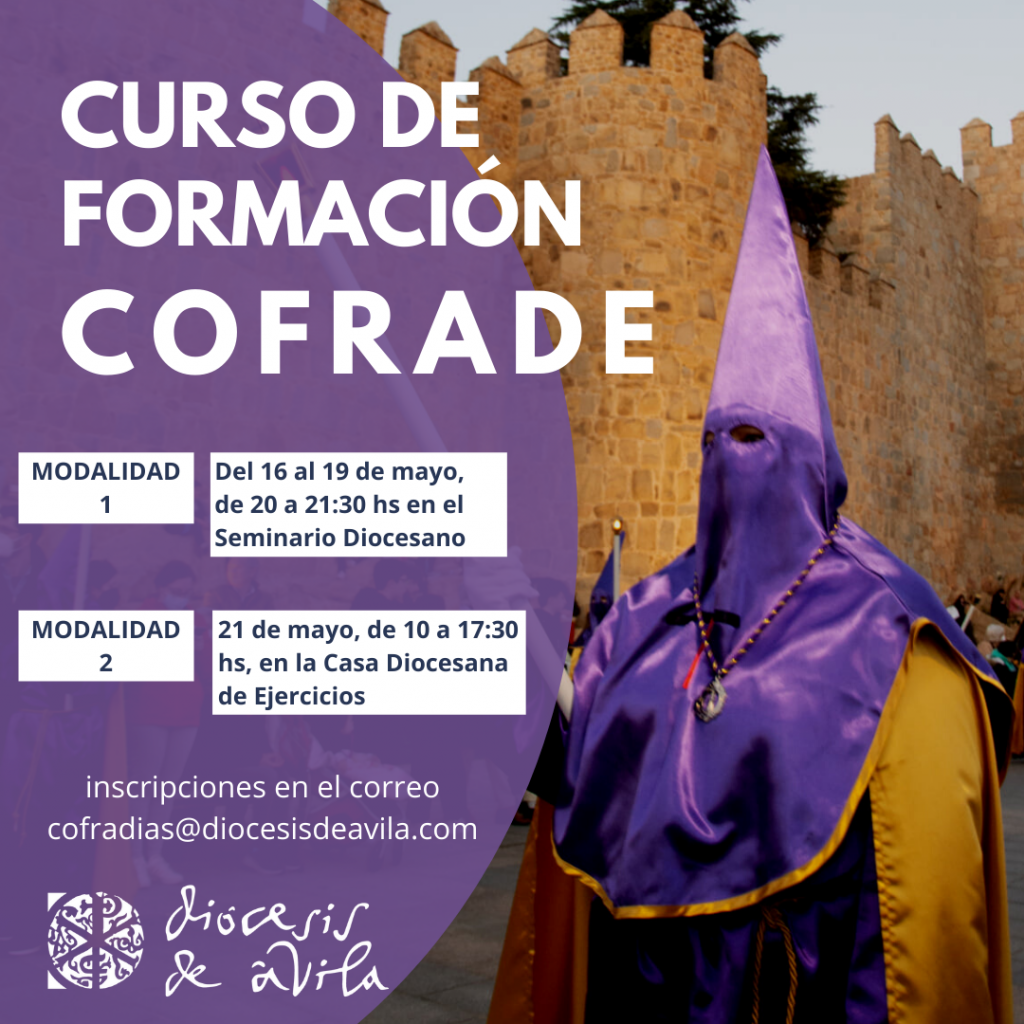 Este curso, en cualquiera de sus modalidades, tiene un precio de 5 €. Los interesados pueden inscribirse antes del 9 de mayo en el correo cofradias@diocesisdeavila.com (es conveniente apuntarse por cofradías).