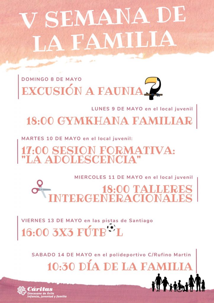 Este mes de mayo, Cáritas diocesana de Ávila celebra una nueva edición de su Semana de la Familia. Durante 2018, el programa de infancia, juventud y familia de Cáritas Diocesana de Ávila cumplía 30 años. Para celebrarlo, se llevó a cabo una semana llena de actividades familiares, que, dado su gran éxito y participación, se instauró como semana de la familia en dicho programa y se viene celebrando año tras año desde esa fecha.