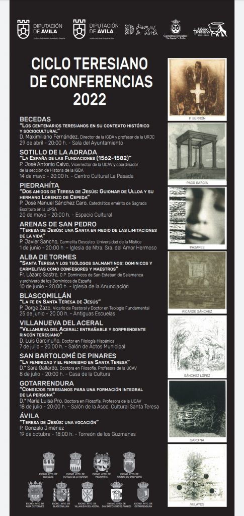 La exposición de grabados tiene obras de Carmelo San Segundo, Luciano Díaz-Castilla, Fausto Blázquez, Florencio Galindo, Guadaño, J.Barbero y Miguel Ángel Gómez. Mientras que las diferentes conferencias cuentan con reflexiones de catedráticos, frailes, historiadores … sobre distintos aspectos de la figura de Santa Teresa de Jesús.