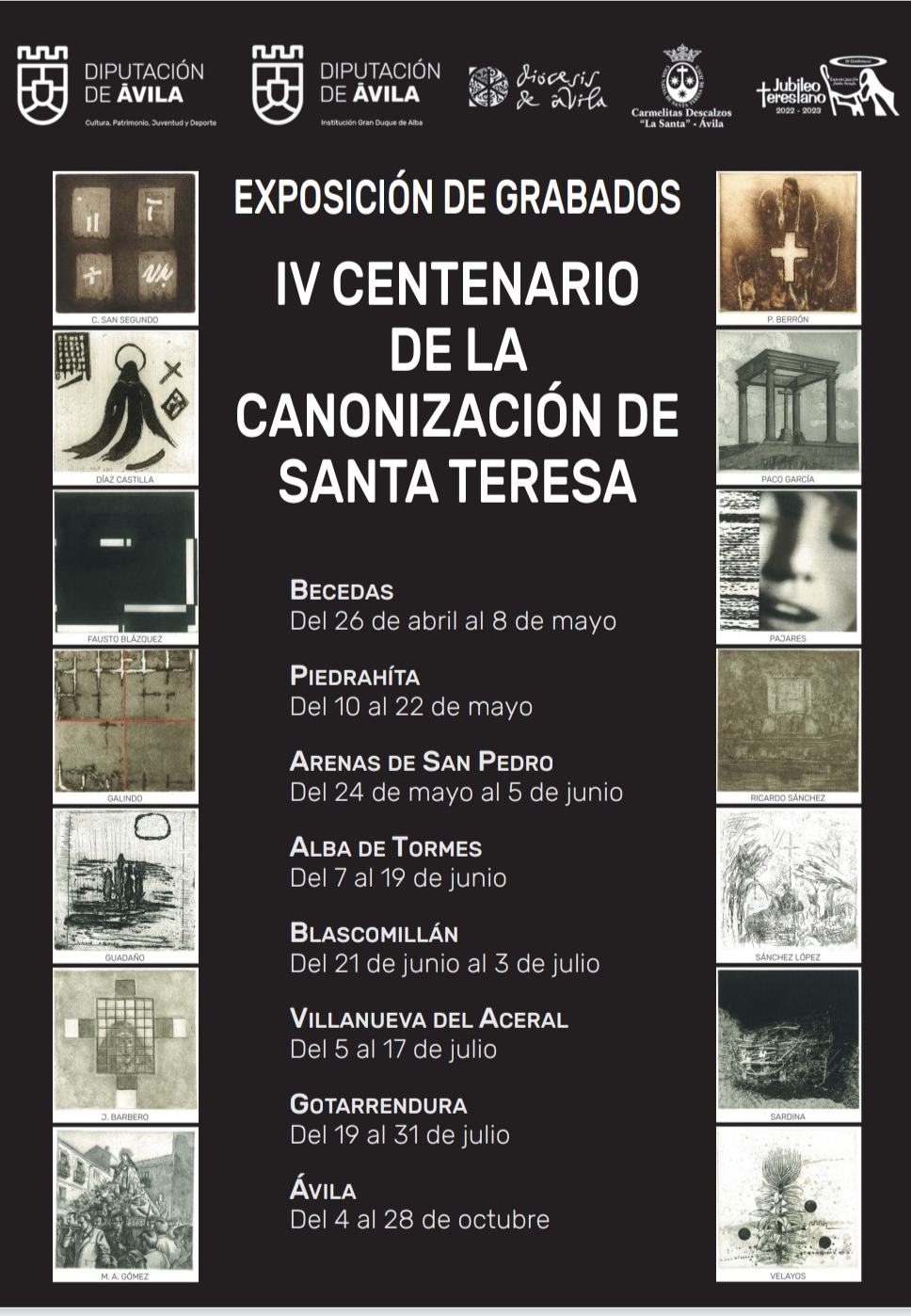 Acercarse a la figura «poliédrica» de la Santa. Es el objetivo del ciclo de conferencias y la exposición itinerante de grabados que, de la mano de la Institución Gran Duque de Alba (dependiente de la Diputación Provincial) y de la Diócesis abulense, podemos disfrutar a lo largo de toda la provincia de Ávila en este IV Centenario de la Canonización de Santa Teresa. Y es que, pese a que por el momento y hasta octubre este Jubileo está centralizado en Ávila capital, no podemos olvidar la huella teresiana en muchos puntos de la provincia.