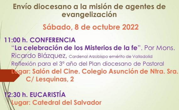 Arrancando ya el nuevo curso, en el que ponemos en marcha una nueva etapa del Plan Pastoral de la diócesis, este sábado 8 de octubre celebraremos el “envío a la misión” de todos aquellos católicos que trabajan en algún campo de la evangelización, siendo más conscientes de que es el Señor quien nos envía, […]