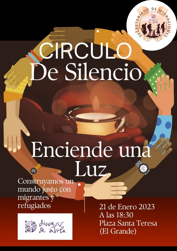 Nuestra diócesis de Ávila también quiere sumarse a esta iniciativa que lleva tiempo haciéndose en muchas ciudades españolas, y para ello convoca un círculo de silencio para la tarde de este sábado, 21 de enero, en la Plaza Santa Teresa (Mercado Grande). Sabemos de las dificultades y sufrimientos que padecen nuestros hermanos migrantes y refugiados. Nos sentimos a su lado y queremos ofrecerles todo nuestro apoyo.