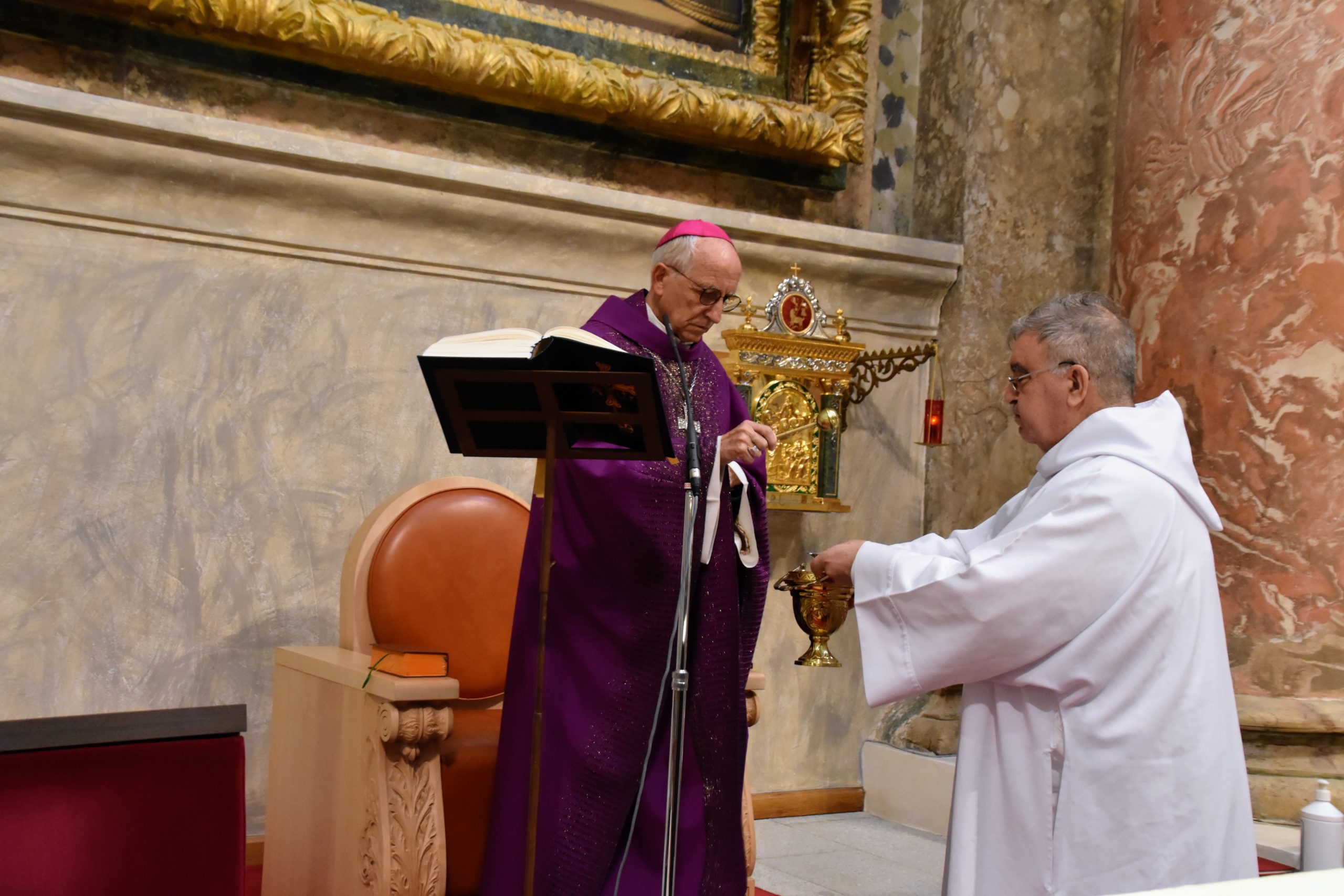 «Mucho ánimo. Que solo son 40 días, como Jesús en el desierto, para llegar a la montaña santa, que es la Pascua». Con estas palabras exhortaba Mons. García Burillo a los fieles a comenzar animosos y esperanzados este tiempo de Cuaresma. Lo hacía tras el rezo de Laudes y la celebración en la que ha impuesto la ceniza que recuerda nuestra fragilidad y nuestra condición pecadora.
