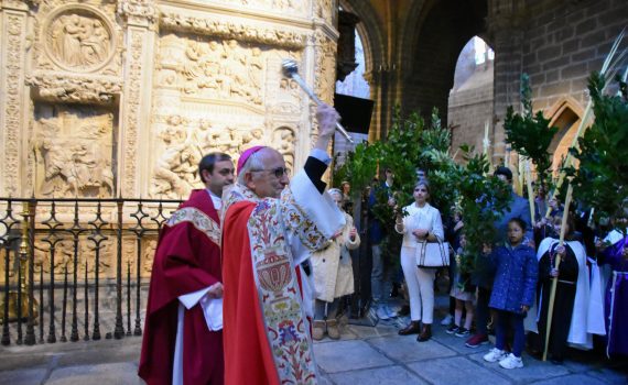 La nave central llena de niños mostraba el carácter festivo de un Domingo de Ramos luminoso en la Catedral del Salvador. Mons. García Burillo presidía de rojo desde el altar la celebración litúrgica con la que da comienzo la Semana Santa y que comenzaba con la bendición de los ramos en el trascoro. IMAGENES DE […]
