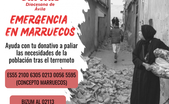 Tras el seísmo que azotó Marruecos el pasado fin de semana, que ha dejado tras de sí un número dramático de víctimas mortales y heridos, Cáritas diocesana de Ávila apela a la solidaridad de los abulenses con el pueblo marroquí para ayudar a aquellos que se han quedado sin hogar, sin trabajo, sin nada. Durante […]