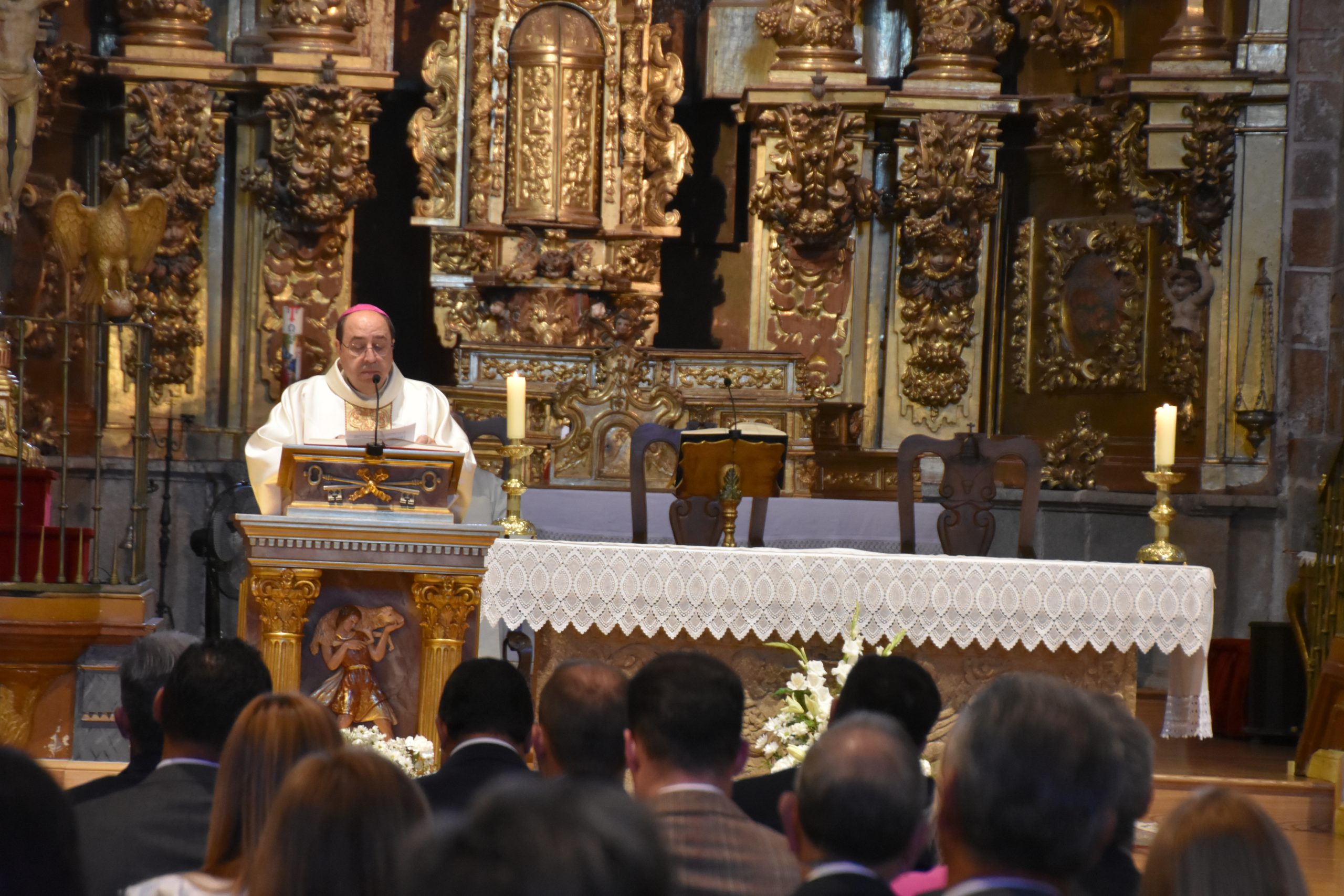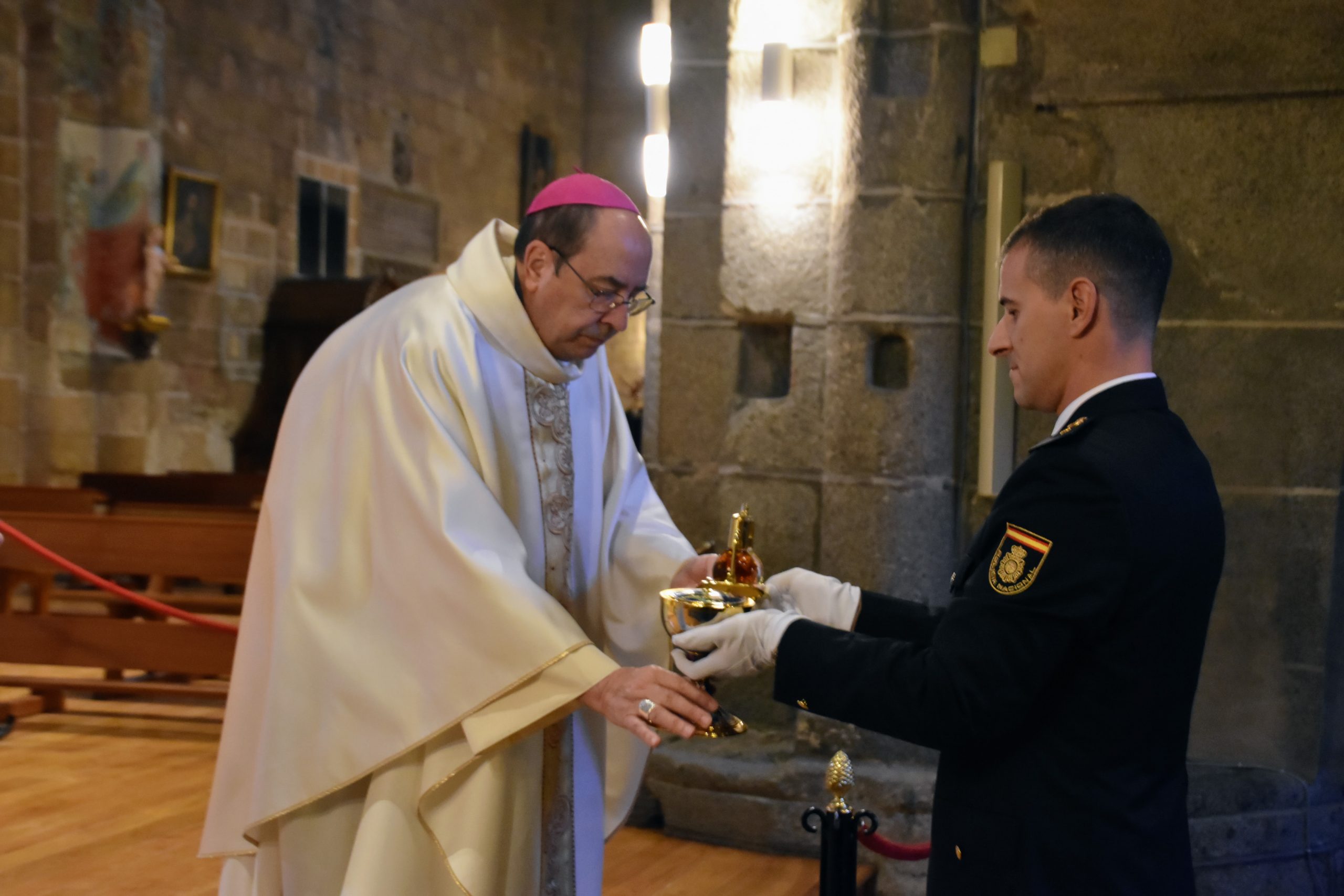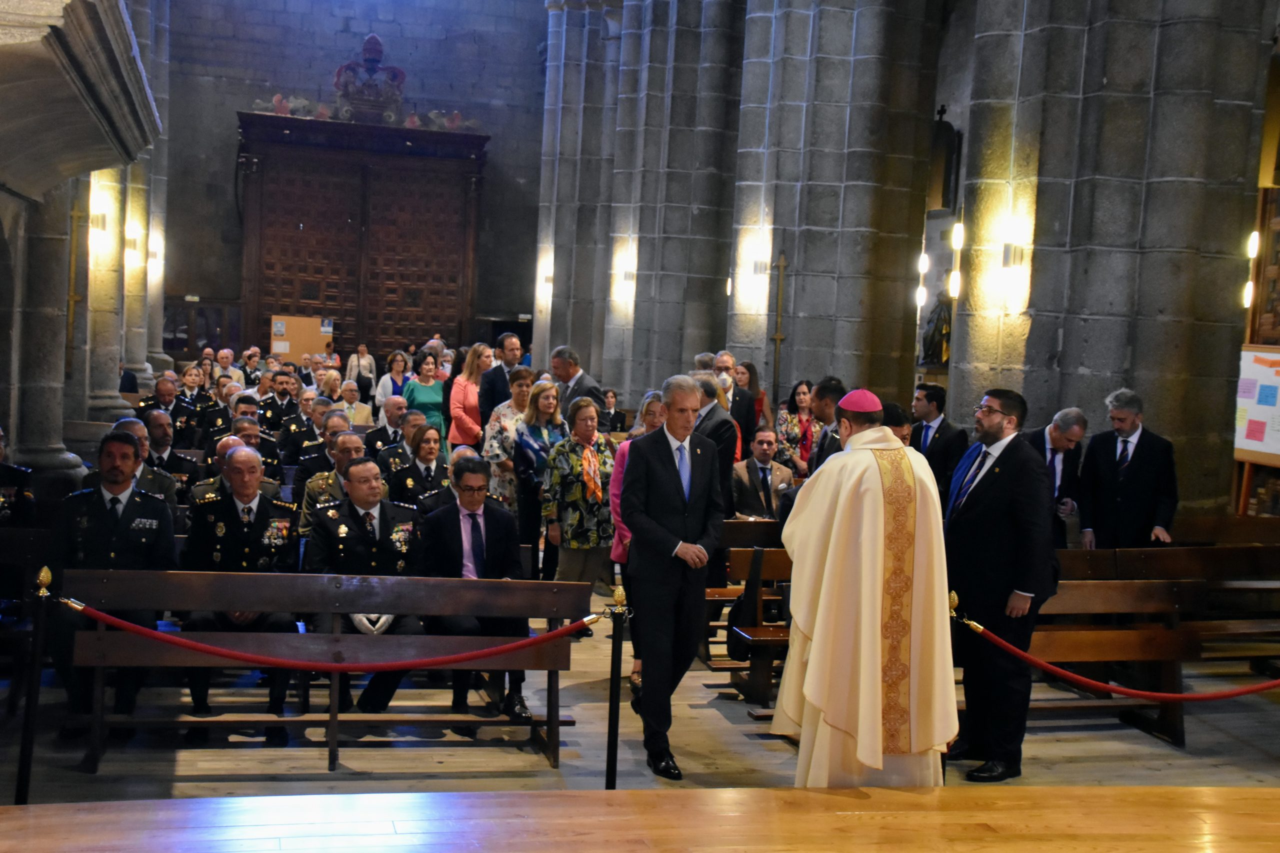 La iglesia de San Pedro Apóstol acogía a primera hora de la mañana una Eucaristía, presidida por nuestro obispo D. Jesús, y participada por un gran número de fieles. No hay que olvidar que Ávila es sede de la Escuela Nacional de Policía, lugar donde se forman los futuros miembros de este Cuerpo: de ahí la amplia presencia de mandos policiales, alumnos de la Escuela, así como autoridades civiles y militares. Todos ellos han recordado junto con Mons. Rico (y el capellán de la Escuela, Mons. Eliseo Rubio) la importancia de la protección que nos brindan a nivel espiritual los Ángeles Custodios, y a nivel fáctico la propia Policía Nacional.