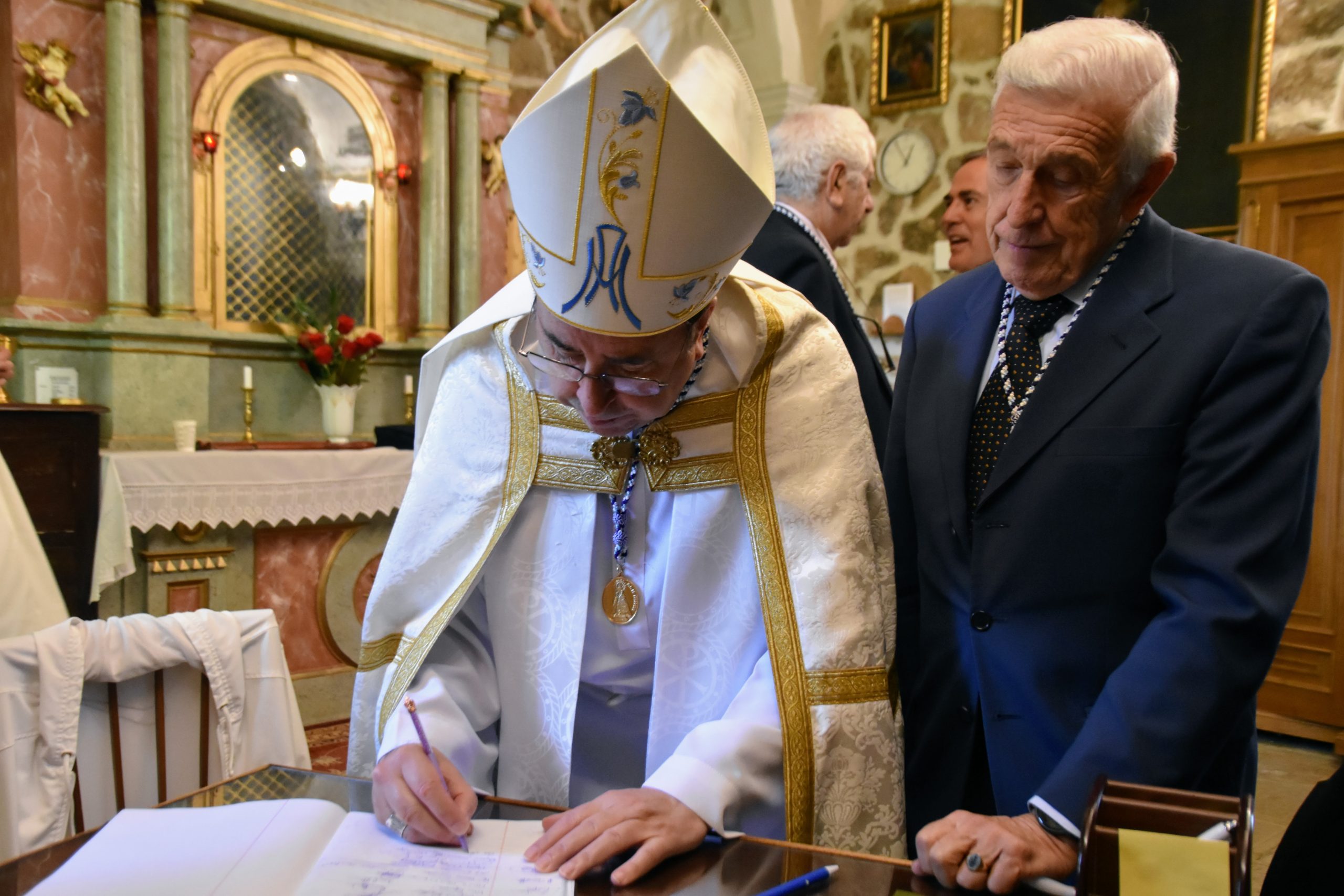 La jornada comenzó con la celebración de la Eucaristía, presidida por Mons. Rico García, en la que es su primera visita oficial al Santuario diocesano de Sonsoles. De ahí que, al término de la misma, se acercara hasta la sacristía para firmar en el libro de honor del Patronato.