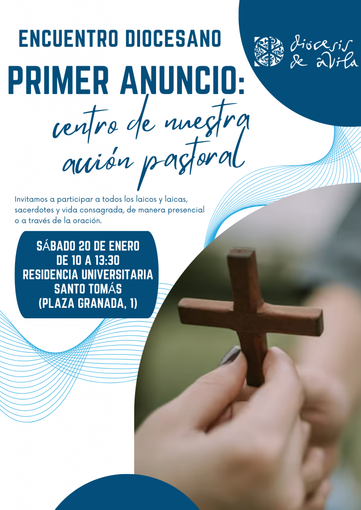 Tal como nos recuerdan desde la CEE, es deseable que estos ‘encuentros nacionales’ no se queden en un hecho aislado, sino que sirvan para dinamizar la misión evangelizadora en nuestras diócesis. Con este objetivo, el próximo sábado 20 de enero vamos a celebrar en Ávila un encuentro diocesano que sirva de canal de Gracia y Comunión, reflexión, discernimiento y envío de cara a dicho encuentro nacional. Será en horario de 10 a 13.30 en la residencia universitaria de Santo Tomás, donde participaremos en la Eucaristía de las 13h con la comunidad de dicha parroquia. El objetivo último es crecer en Comunión para la Misión. Desde la organización son conscientes del poco tiempo de convocatoria pero animan a todos a rezar por los frutos de estos encuentros y a continuar atentos, pues, en todo caso, habrá ocasiones recurrentes en el futuro para seguir reavivando nuestro apostolado.