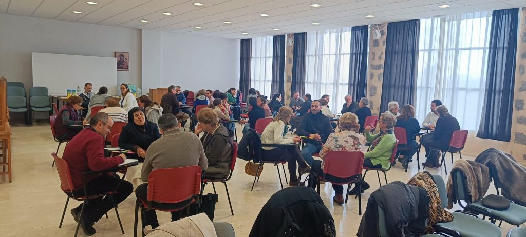 Se comenzó con una oración a cargo del grupo de renovación carismática, que tiene su sede en la propia parroquia, para ayudar a los asistentes a entrar en un clima de apertura a la acción del Espíritu Santo, esencial en toda actividad como cristianos. La parte más amplia de la mañana estuvo dedicada a un tiempo de comunión para conocerse los unos a los otros y después en la primera toma de contacto sobre el tema a tratar se preguntó: ¿Qué es y y qué no es el primer anuncio? y los elementos que no deben faltar; para, posteriormente, dar respuesta a las mismas en la ponencia a cargo de la delegada de apostolado seglar de la diócesis, Diana Rosa Moya, que desde 2020 es también miembro del consejo asesor de la comisión para los laicos, familia y vida de la conferencia episcopal.