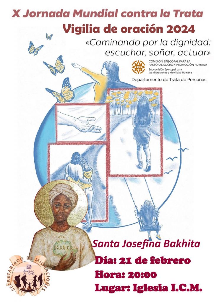 Este jueves, 8 de febrero, memoria litúrgica de Santa Josefina Bakhita, la Iglesia celebra la Jornada Mundial contra la Trata de Personas. Una cita que propuso hace 10 años el Papa Francisco, y que en este 2024 lleva como lema «Caminando por la dignidad: escuchar, soñar, actuar». Todos estamos llamados a apoyar este compromiso en favor de la dignidad humana, pues esta lacra sigue aún hoy muy presente en numerosos países, tratando a las personas como meras mercancías. La Iglesia propone como ejemplo de superación y referente en esta misión a santa Josefina Bakhita. Es el rostro y el símbolo contra la Trata de seres humanos. Esta santa sudanesa fue esclavizada durante años, vendida en varias ocasiones y liberada en Italia, donde conoció a Cristo. Pidió ser bautizada para finalmente ingresar como religiosa en la congregación de las Hijas de la Caridad Canossianas. Fue canonizada por San Juan Pablo II.