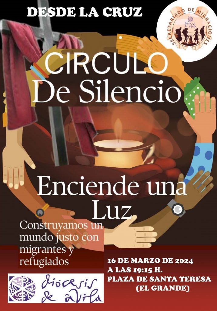 El Secretariado diocesano de Migraciones nos invita a participar en un nuevo Círculo de Silencio para poner en el foco el drama de quienes se ven arrastrados a dejar sus tierras. En esta ocasión, se ha querido dar un sentido cuaresmal a esta iniciativa, bajo el lema «Desde la Cruz, enciende una luz», entendiendo así ese camino desde las dificultades que atraviesan a la esperanza de la integración.