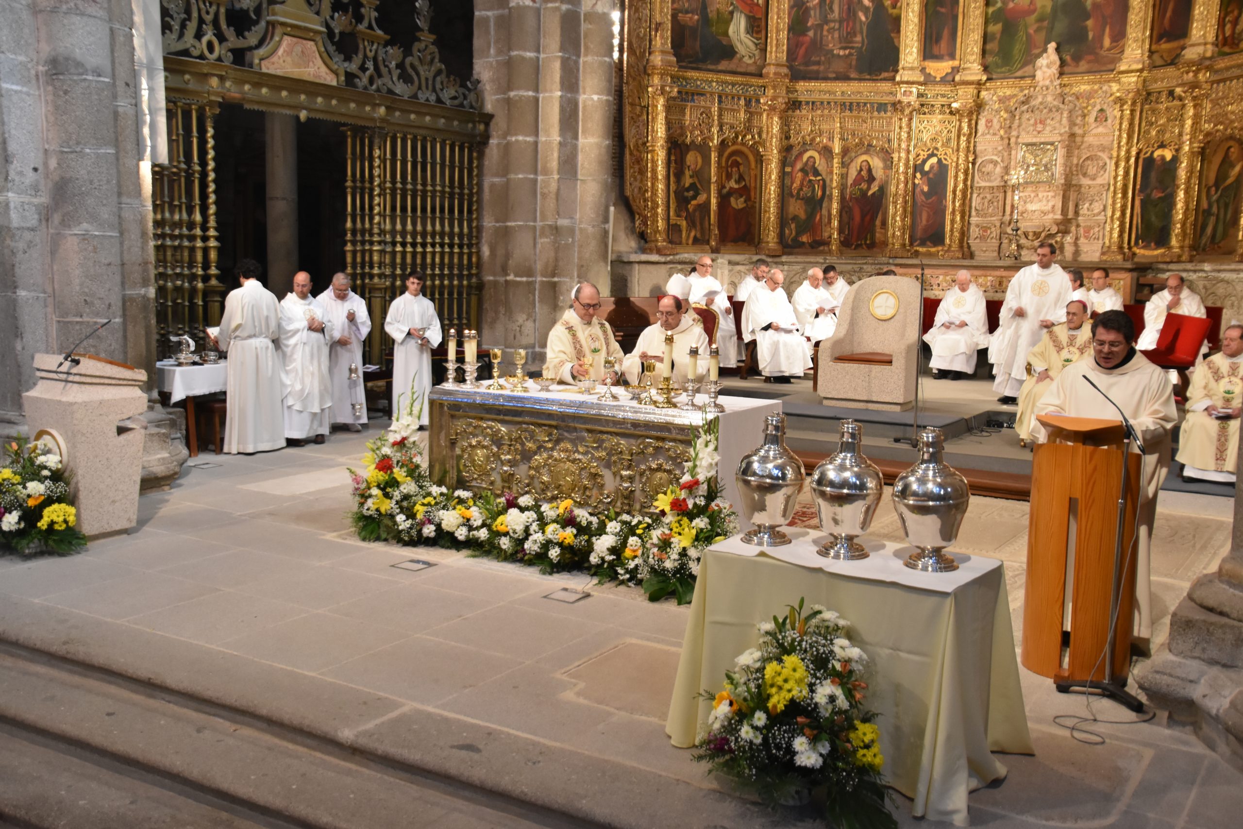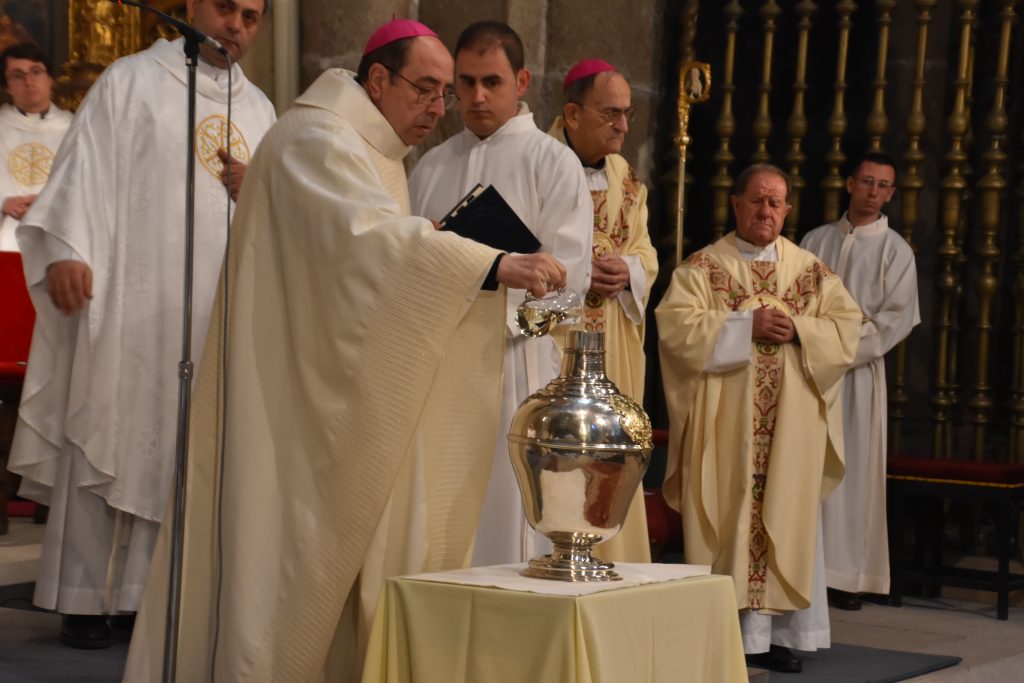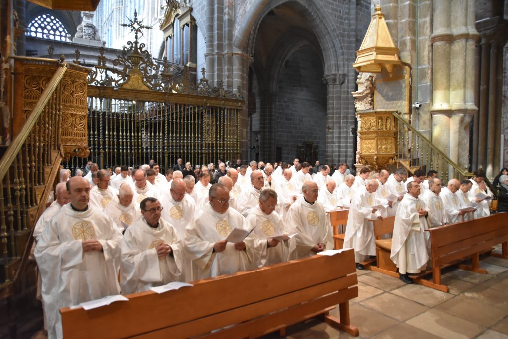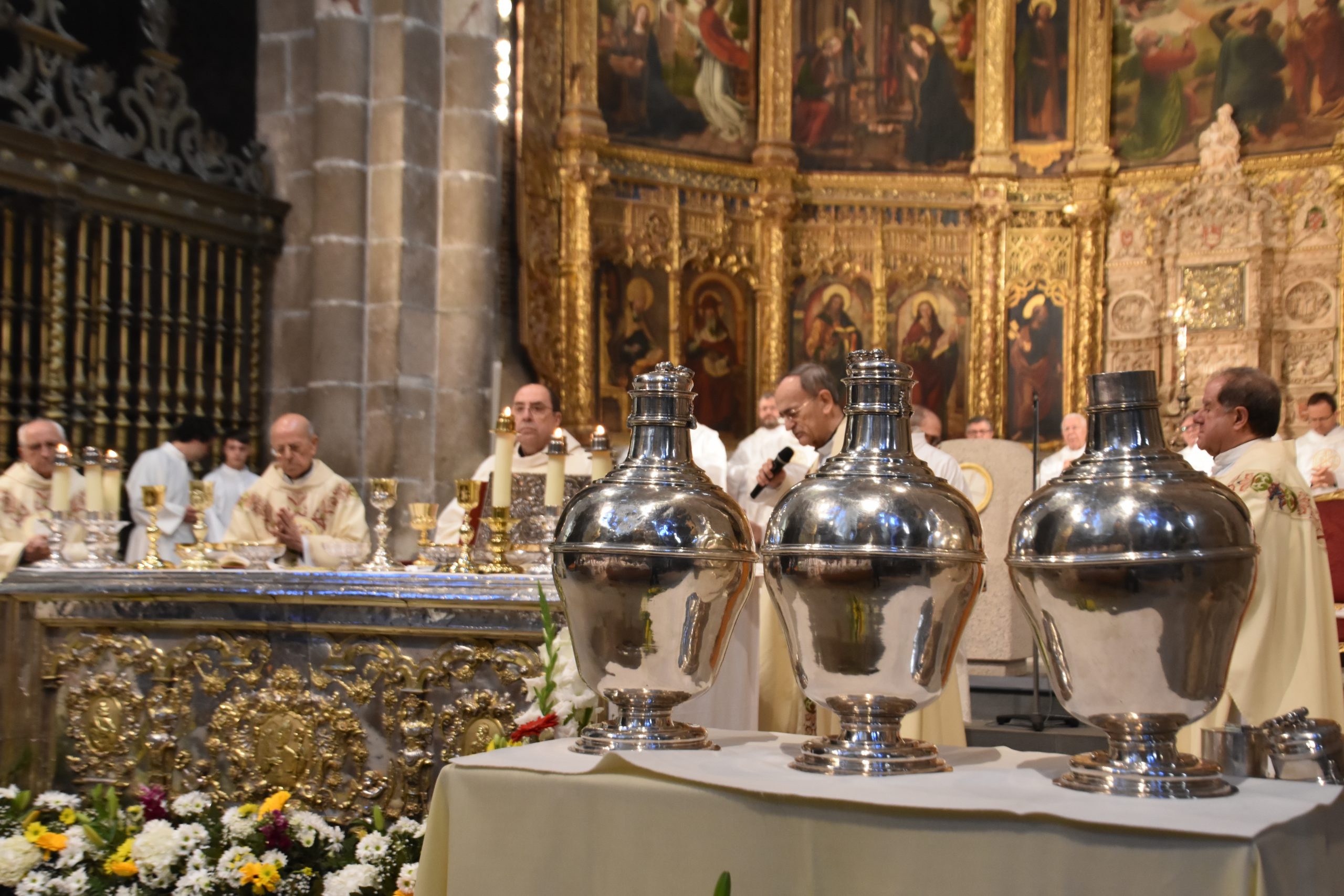 En la Misa Crismal, los óleos están en el centro de la acción litúrgica. Son consagrados por el obispo en la Catedral para todo el año. En ese sentido, el obispo de Ávila indicaba cómo «expresan también la unidad de la Iglesia, garantizada por el Episcopado y remiten a Cristo, el verdadero Pastor, y guardián de nuestras almas, como lo llama San Pedro. De este modo el óleo, en sus diversas formas, nos acompaña durante toda la vida, comenzando por el catecumenado en el Bautismo, hasta el momento en el que nos preparemos para el encuentro con Dios juez y salvador. En la Misa Crismal, en la que el signo sacramental del oleo se nos presenta como lenguaje de la creación de Dios, se dirige de modo particular a nosotros, los sacerdotes. Nos habla de Cristo, que Dios ha ungido rey y sacerdote, de aquel que nos hace partícipe de su sacerdocio, de su misión en nuestra ordenación sacerdotal».