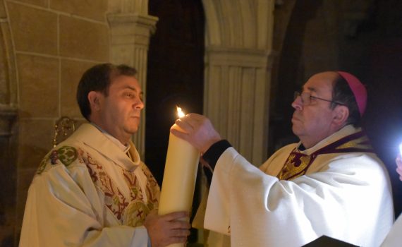 En medio de la más absoluta oscuridad, una luz iluminaba el claustro de la Catedral. La pequeña hoguera, que servía asimismo para calentar a los fieles en una noche aciaga y fría (donde la nieve había hecho acto de presencia), era la imagen de la Luz de Cristo resucitado, que viene a iluminar nuestras tinieblas. […]