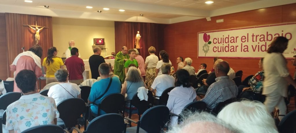 El encuentro, de carácter fundamentalmente festivo, se ha desarrollado en las instalaciones de la Casa de Espiritualidad “Santa Teresa” (antiguo Noviciado) junto al parque de “El Soto”. En un primer momento se ha celebrado la Eucaristía, presidida por D. Jesús, en la que ha estado muy presente la nueva Campaña General de la HOAC: “Cuidar el trabajo, cuidar la vida”, con la que el movimiento quiere incidir en los desafíos que la sociedad y economía actuales plantean al mundo del trabajo para que éste satisfaga las necesidades de las personas y las exigencias del bien común. Todo ello con el horizonte de una “sociedad de los cuidados” en la que la prioridad sea la vida de (todas) las personas y la vida del planeta.