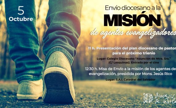 Arrancando ya el nuevo curso, en el que ponemos en marcha un nuevo Plan Pastoral para el próximo trienio, este sábado 5 de octubre celebraremos el “Envío a la Misión” de los agentes evangelizadores de la diócesis. Profesores de Religión, catequistas, colaboradores de parroquias, grupos y movimientos … Todos aquellos que participan de forma activa […]