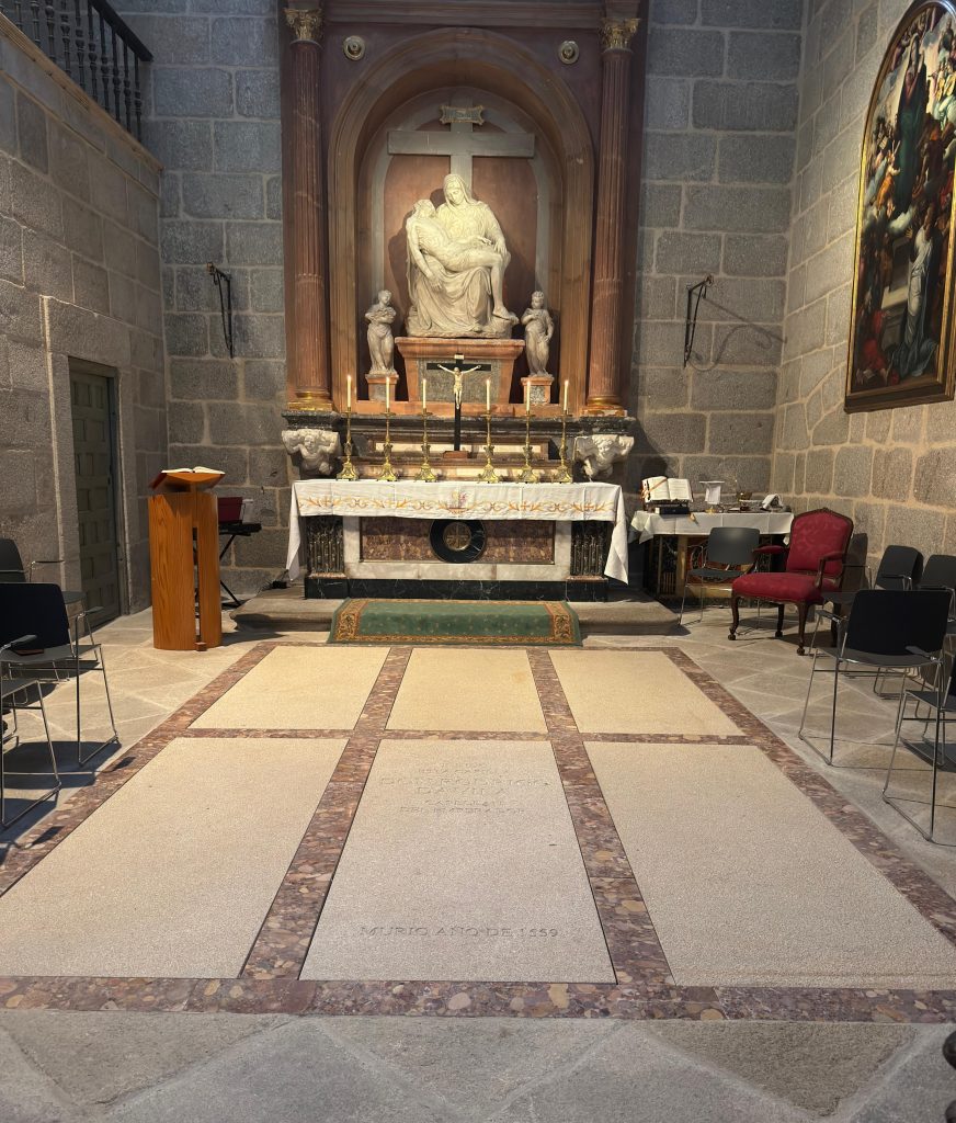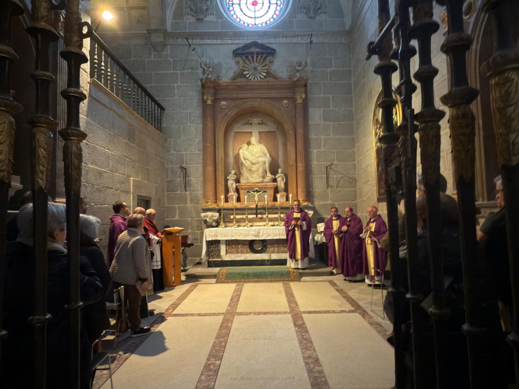 El pasado día 2 de noviembre, el Cabildo Catedral, presidido por Mons. Jesús Rico García (Obispo de Ávila, y acompañado por el Obispo emérito, Mons. Jesús García Burillo, celebró la Misa capitular de las 9 de la mañana en la capilla de la Piedad de la Catedral de Ávila. Cumpliendo el mandato de celebrar misa de sufragio por los obispos difuntos en el día de los fieles difuntos, se aprovechó para retomar el culto en este espacio renovado, así como para bendecir las tumbas que se han construido bajo el renovado pavimento.