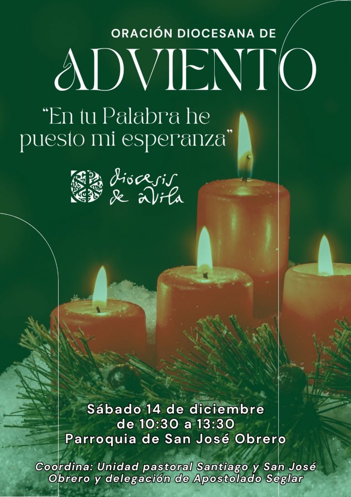 En pleno ecuador de este tiempo de Adviento, en el que vamos «allanando el camino» hacia la llegada del Señor, desde la Delegación de Apostolado Seglar de la diócesis de Ávila y la Unidad pastoral de Santiago y San José Obrero nos invitan este fin de semana a continuar esta preparación interior con la oración, y con la mirada puesta en la esperanza, que da luz a todas nuestras oscuridades. ¡Te esperamos!