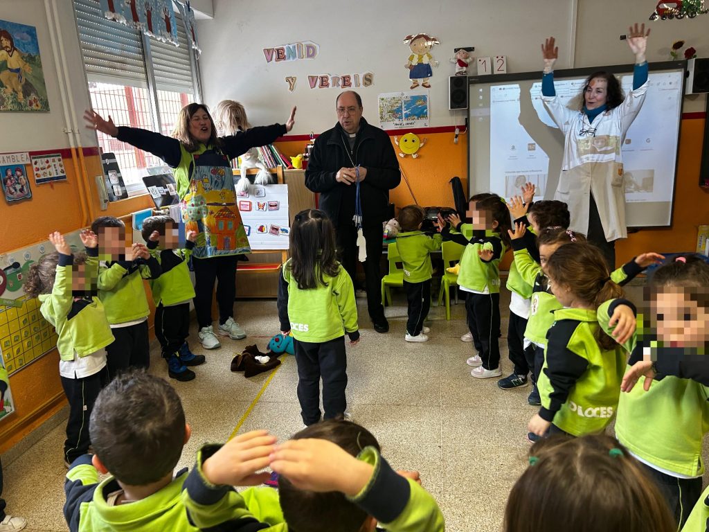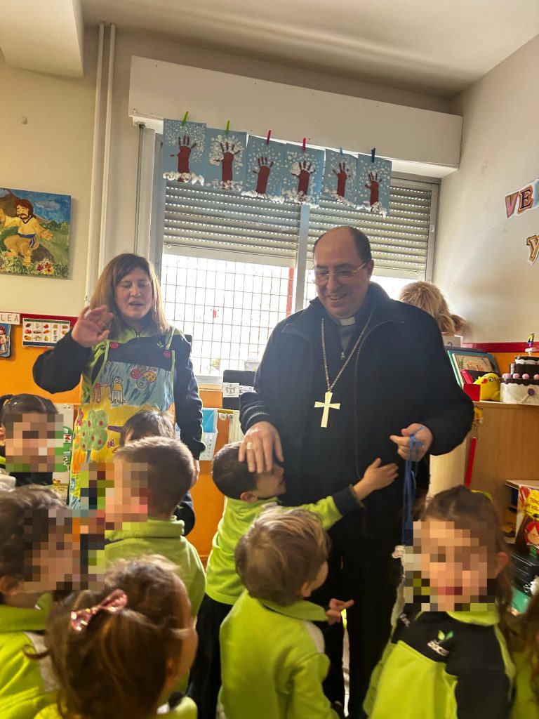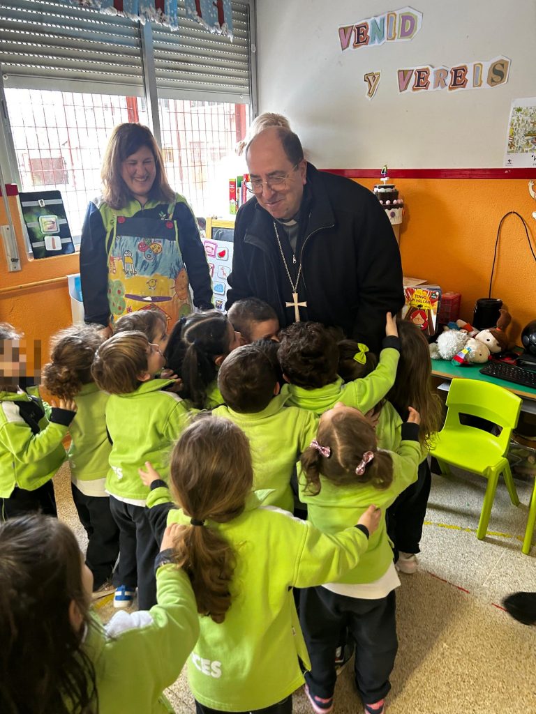 La visita pastoral incluyó también la comunión a los enfermos de la unidad parroquial, así como la visita al colegio diocesano Pablo VI, presente en la realidad del barrio. Era la primera vez que Don Jesús entraba en el centro educativo, y recibió el cariño no sólo de los profesores y el personal no docente, sino también de los niños, que se mostraron felices por su presencia.