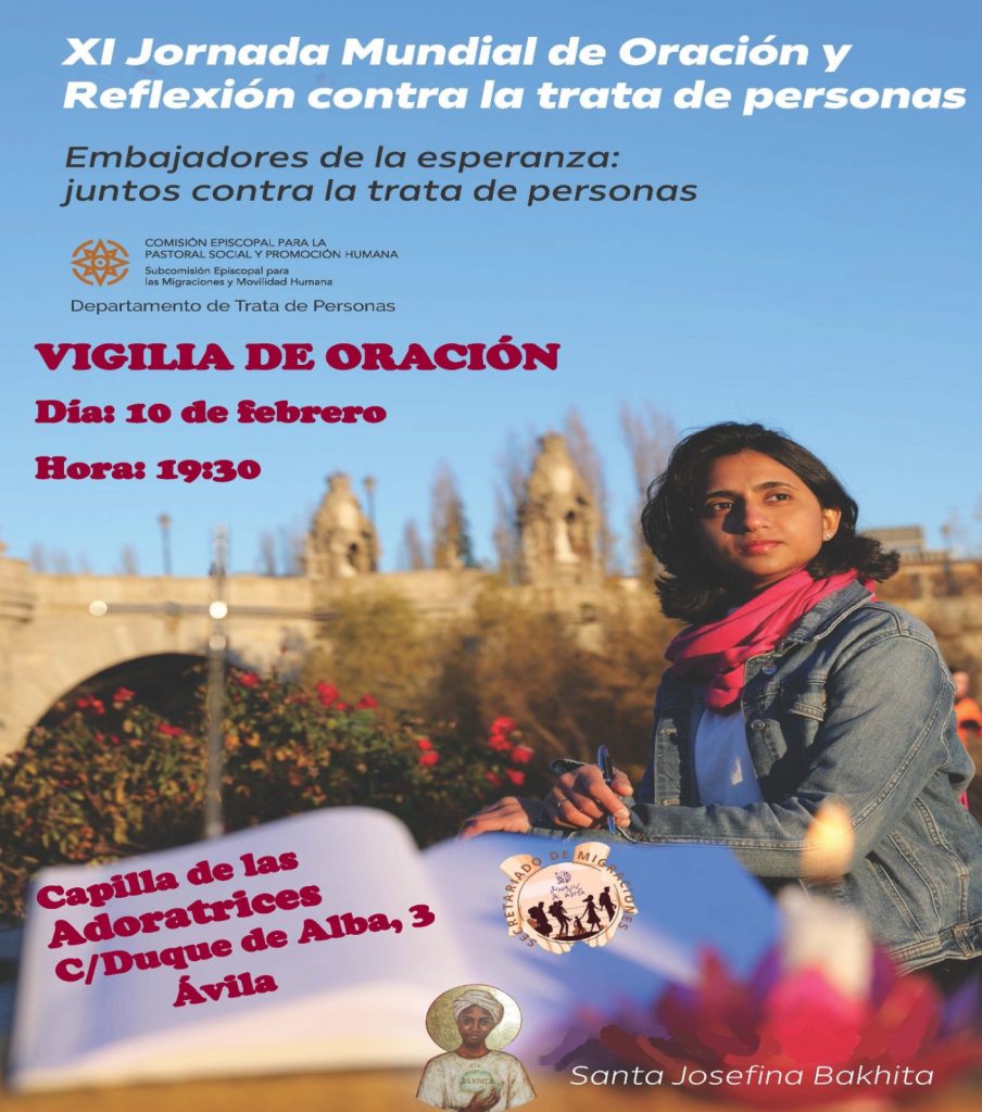 Por nuestra parte, en la diócesis de Ávila, celebraremos esta jornada un poquito más adelante. El Secretariado de Pastoral de Migraciones ha preparado una Vigilia de Oración, que tendrá lugar el lunes 10 de febrero, a las 19:30 horas, en la capilla de las MM. Adoratrices, puesto que ellas dedican su trabajo a la acogida y liberación de las mujeres víctimas de trata. Todos los fieles estamos llamados a participar.
