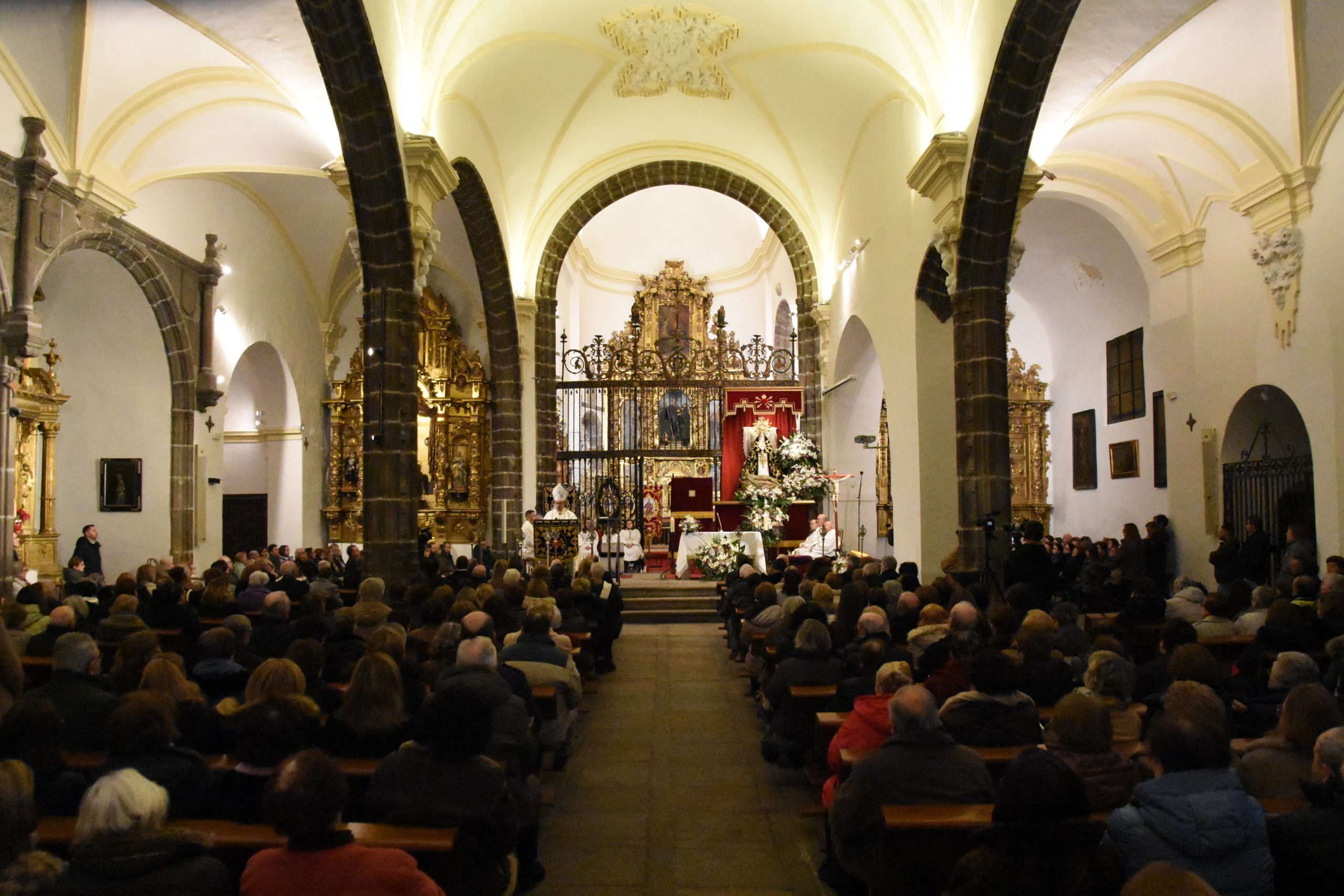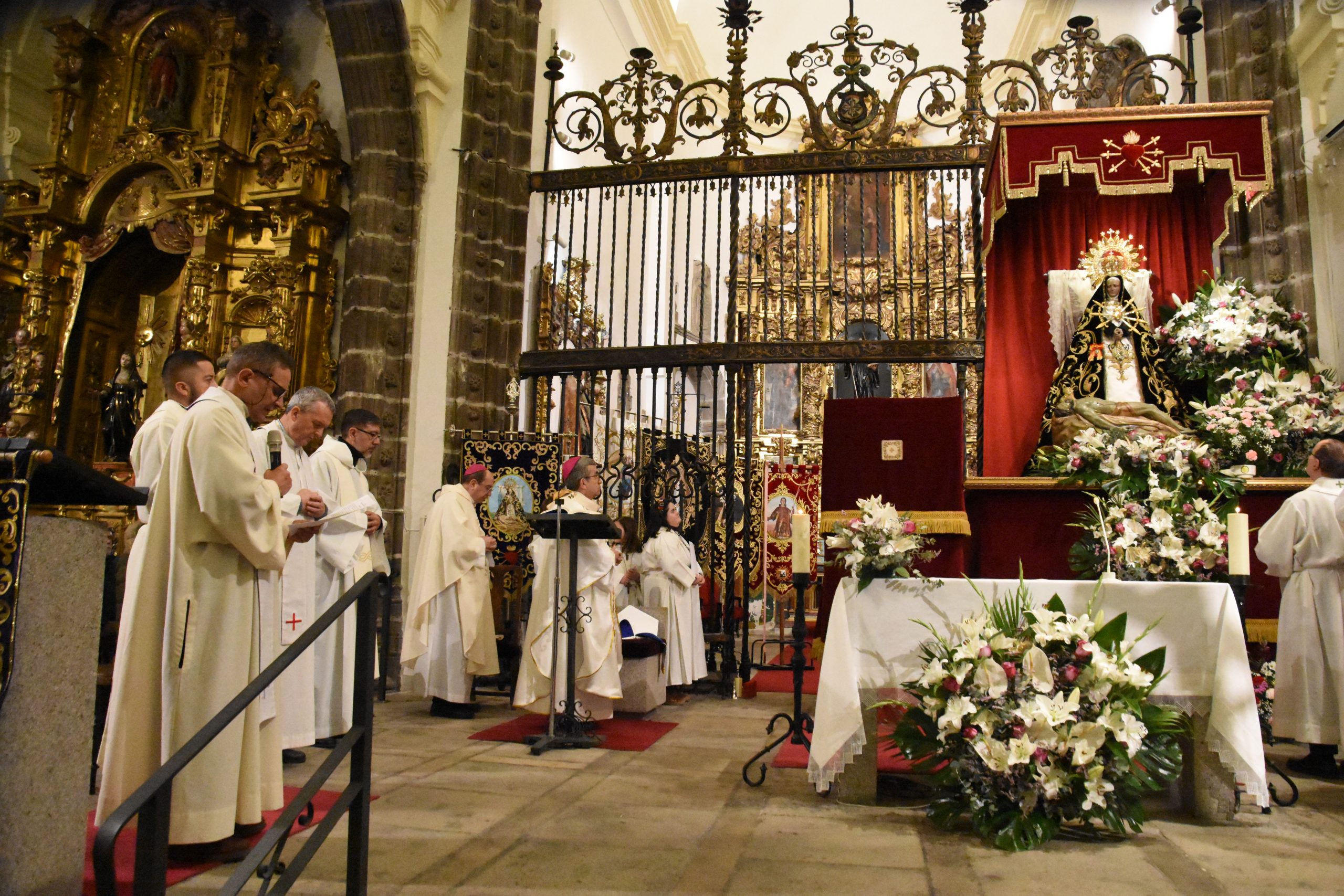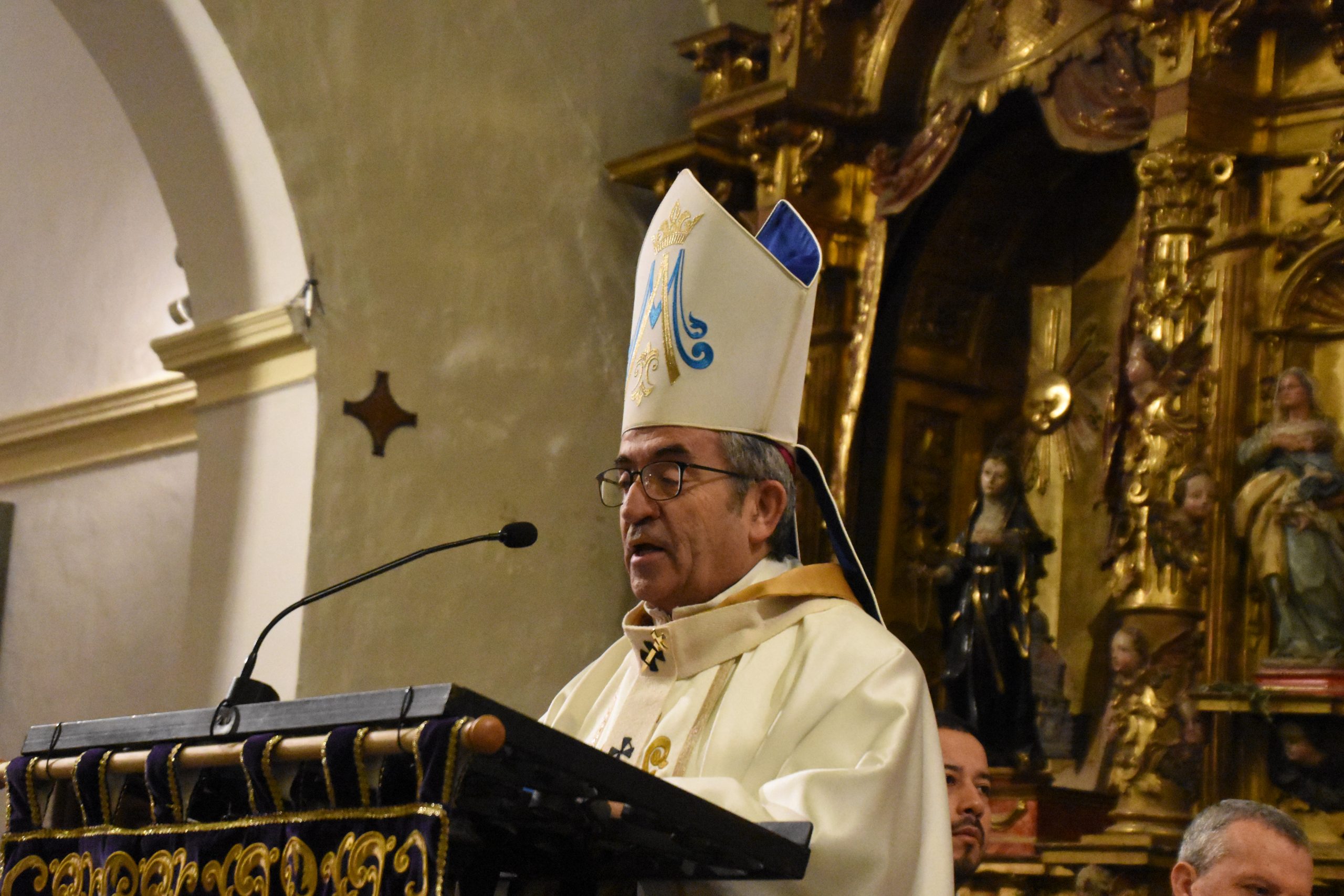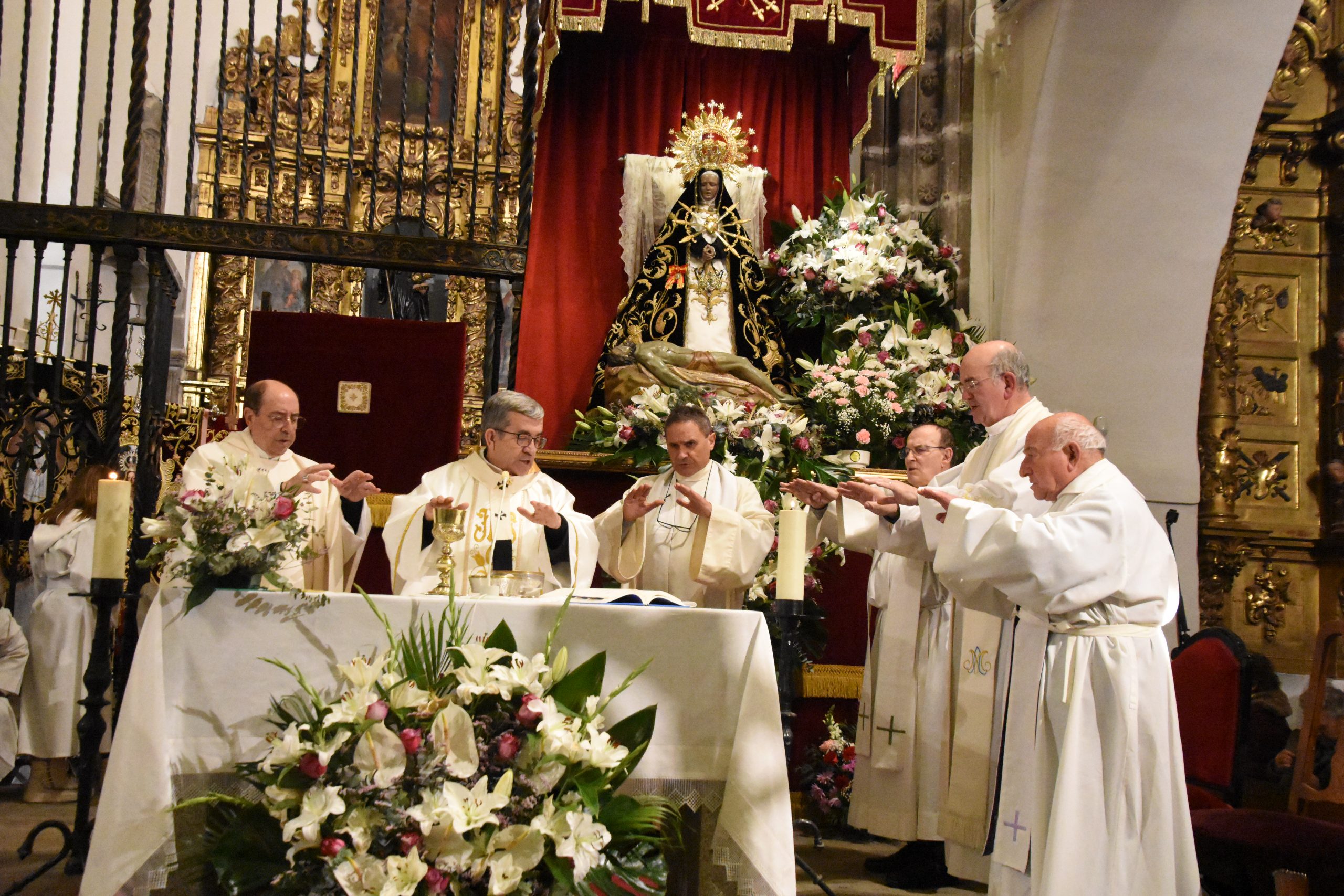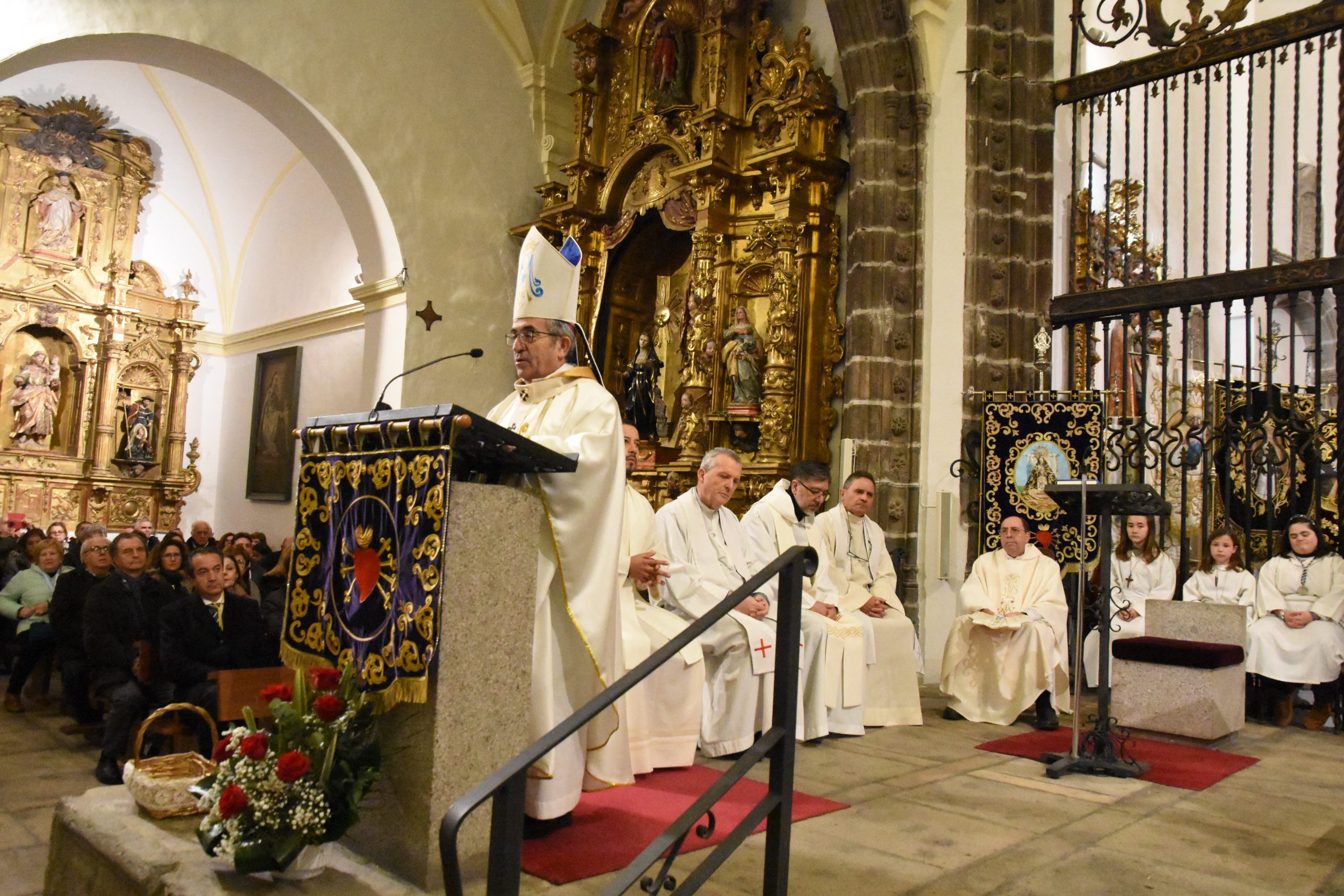 Este miércoles, la localidad abulense de Arévalo vivió una importante jornada histórica y devocional. El arzobispo de Valladolid y presidente de la Conferencia Episcopal Española, Mons. Luis Argüello, impuso la medalla de Isabel la Católica a la Virgen de las Angustias, patrona de este pueblo de la Moraña, y cuya fiesta estamos próximos a celebrar. Al acto también asistieron nuestro Obispo Don Jesús y el párroco de Arévalo, Sebastián Gil, así como varios sacerdotes de parroquias de la zona. Junto a ellos, numerosos fieles que, pese al frío predominante, no quisieron perderse esta noche histórica e hicieron que el templo se mostrase al completo.