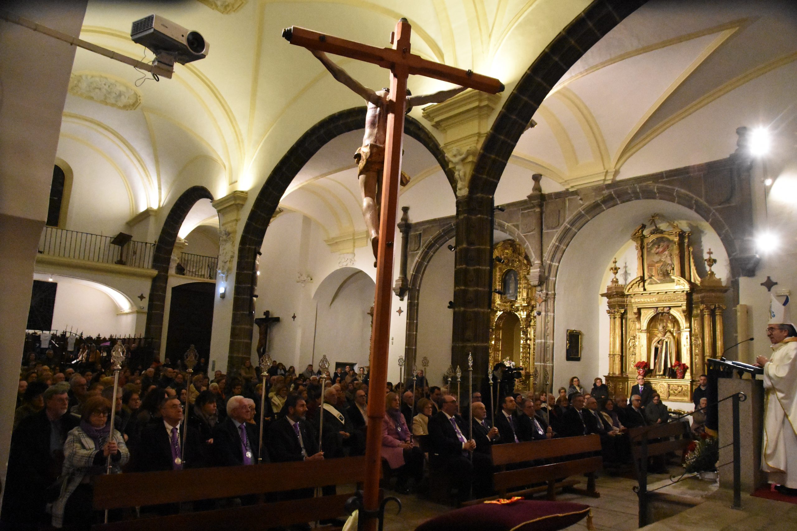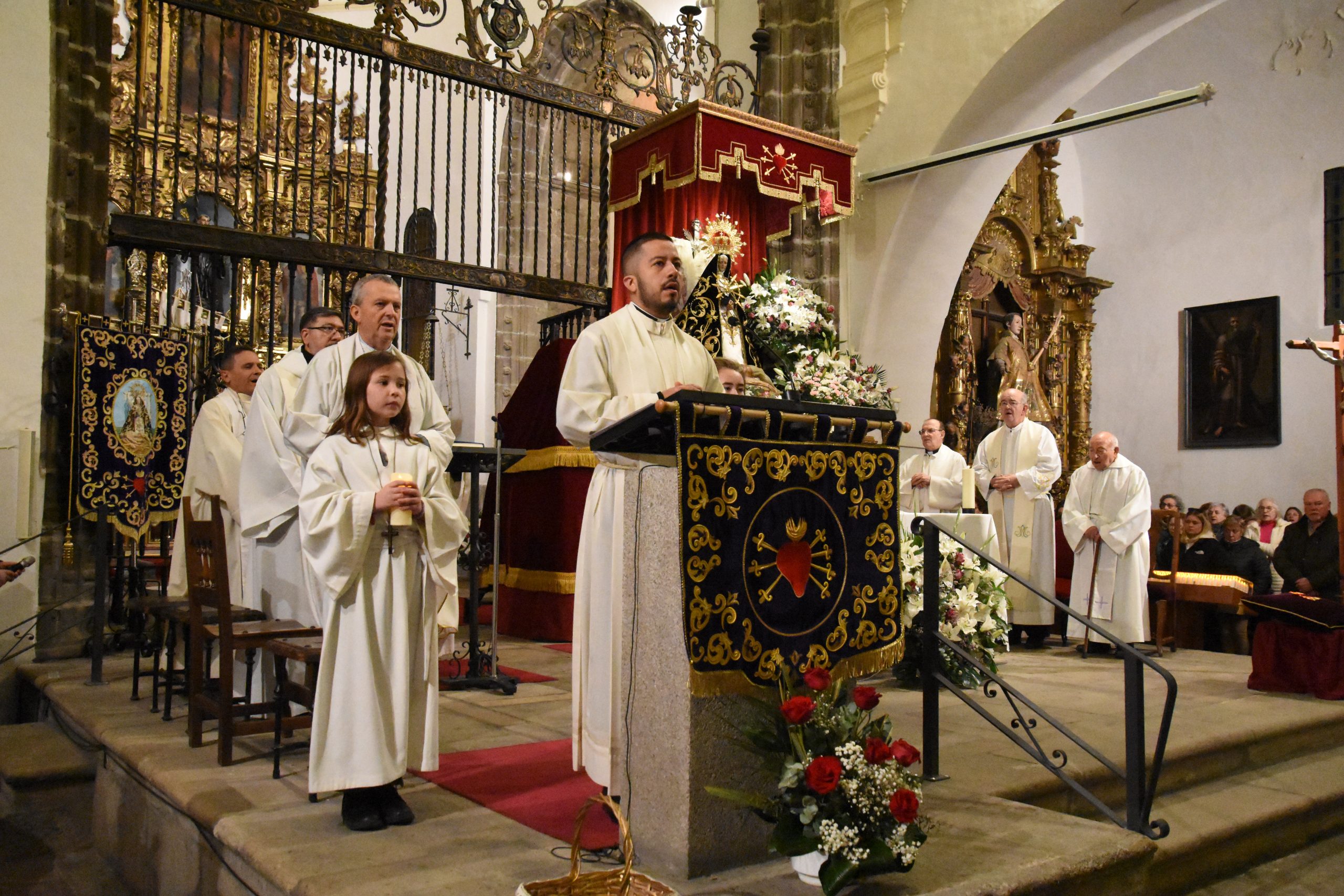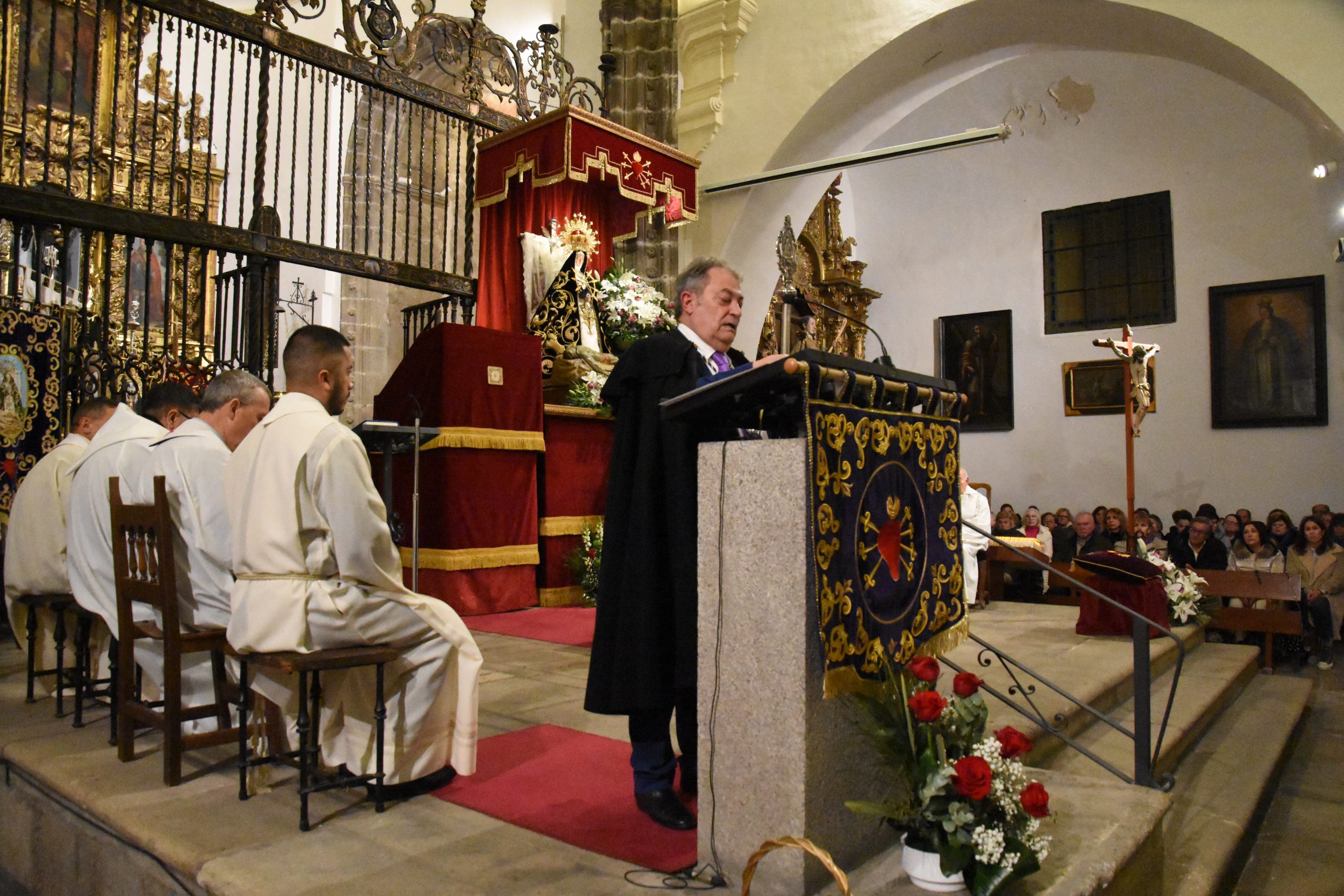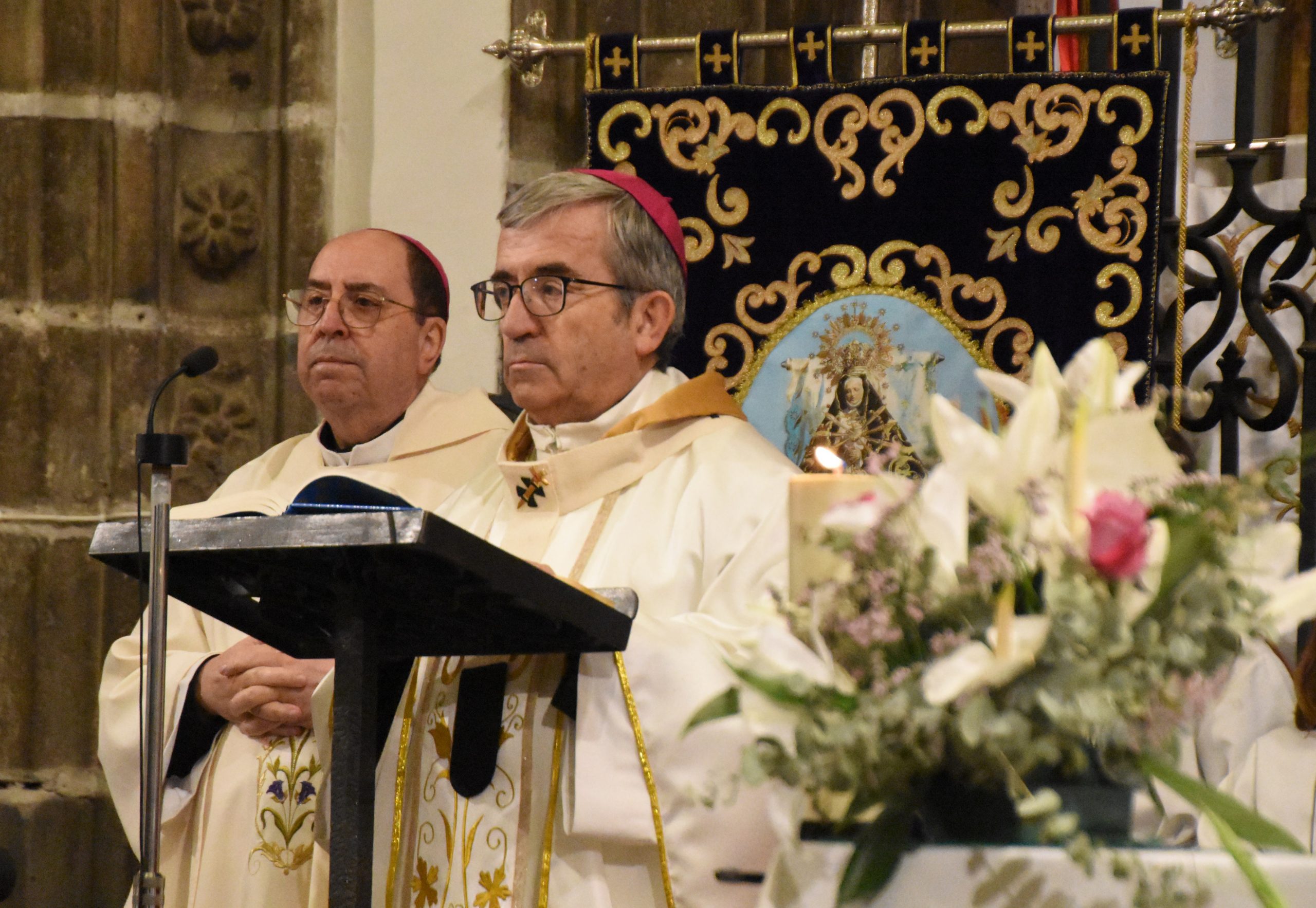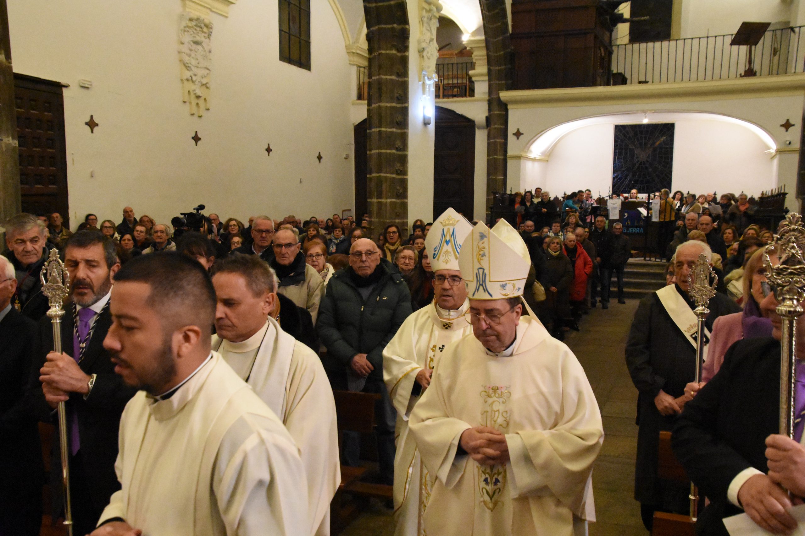 Este miércoles, la localidad abulense de Arévalo vivió una importante jornada histórica y devocional. El arzobispo de Valladolid y presidente de la Conferencia Episcopal Española, Mons. Luis Argüello, impuso la medalla de Isabel la Católica a la Virgen de las Angustias, patrona de este pueblo de la Moraña, y cuya fiesta estamos próximos a celebrar. Al acto también asistieron nuestro Obispo Don Jesús y el párroco de Arévalo, Sebastián Gil, así como varios sacerdotes de parroquias de la zona. Junto a ellos, numerosos fieles que, pese al frío predominante, no quisieron perderse esta noche histórica e hicieron que el templo se mostrase al completo.