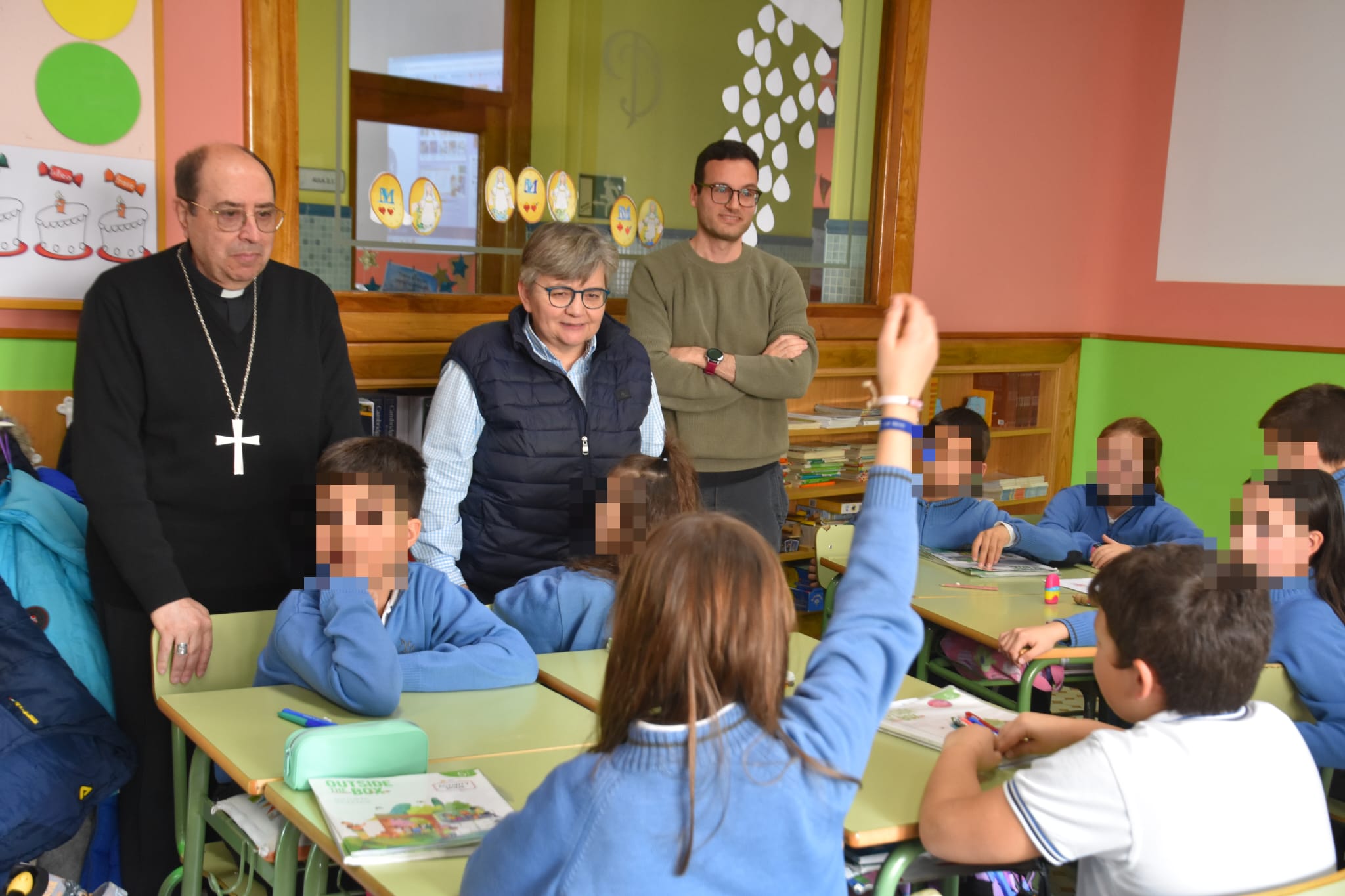 Asimismo, Don Jesús se acercó a conocer de primera mano el trabajo de los dos colegios religiosos de la zona. El primero de ellos, el Santísimo Rosario (conocido como el colegio de Mosén Rubí), que gestionan las Madres Dominicas, y que acogieron al obispo con mucho cariño entre sus alumnos.