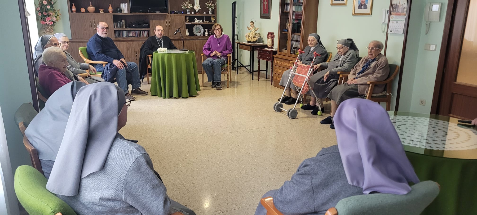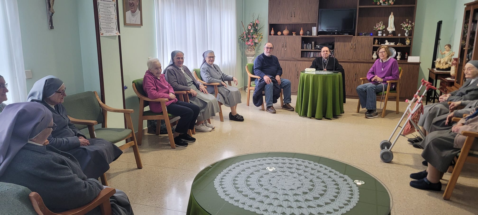 Las visitas pastorales también sirven para que el obispo pueda acercarse a toda la realidad que engloba la demarcación de la unidad pastoral en sus diferentes facetas. De esta manera, el miércoles 12 pudo reunirse con las Madres Adoratrices, cuya comunidad pertenece a esta unidad pastoral, y que trabajan incansablemente con jóvenes estudiantes.