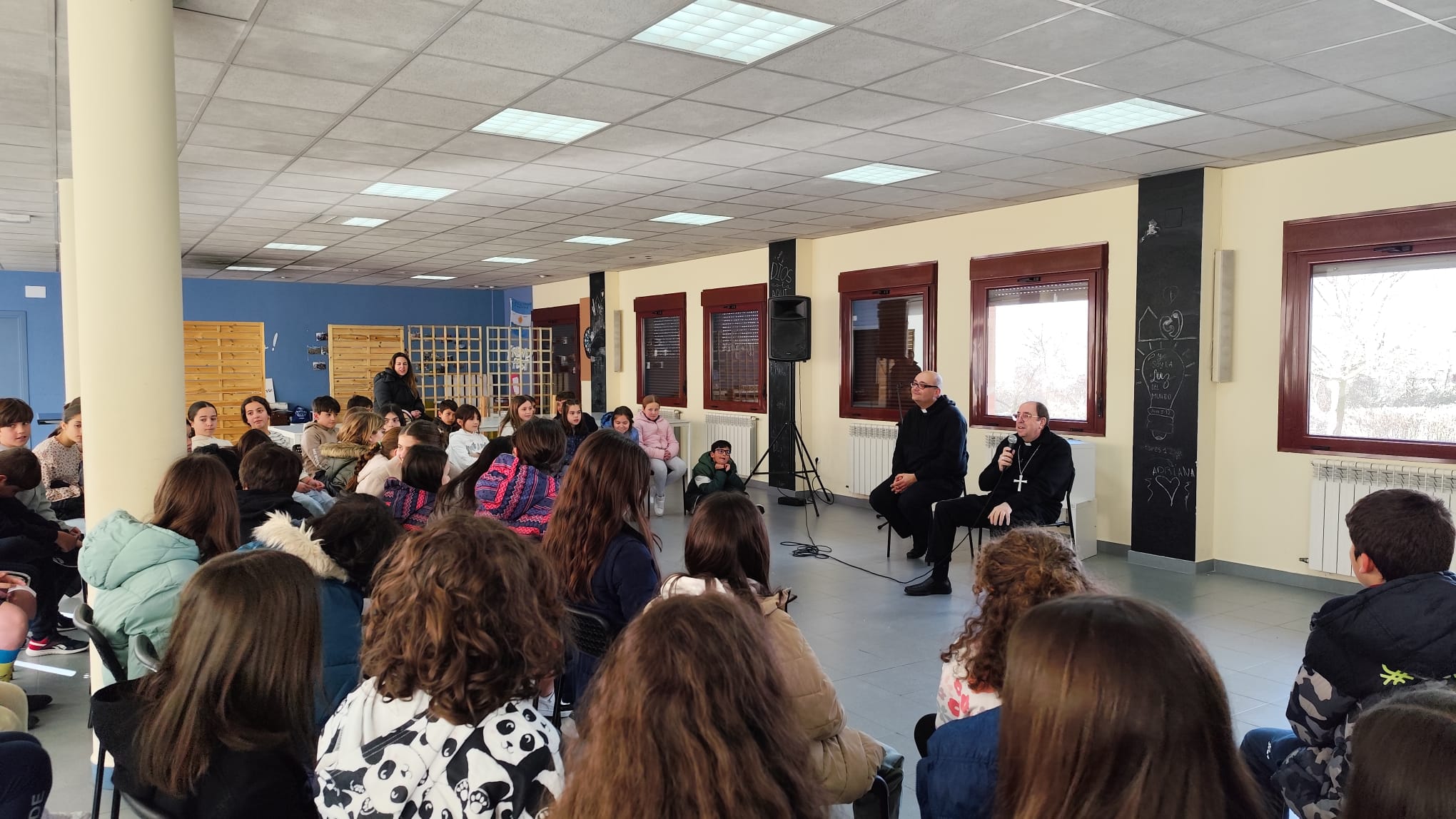 En esta última semana ha podido visitar la unidad pastoral del ICM y San Pedro Bautista, cuyo párroco es también el Vicario de Pastoral de la diócesis, D. Jorge Zazo. Una visita que arrancaba el domingo 9 de marzo en el Inmaculado Corazón de María, con una Misa en la que los fieles de toda la unidad parroquial. D. Jesús pudo, asimismo, participar en el reto inicial de los catecúmenos de la parroquia, a quienes acogió en la misma con gran cariño. Y después de la celebración, visitó las aulas de catequesis, conversando con los niños que estaban recibiendo su formación en la fe.