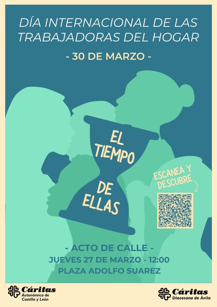 Con motivo del Día Internacional de las Trabajadoras del Hogar, que se celebra cada 30 de marzo desde 1988, Cáritas Autonómica de Castilla y León pone en marcha la campaña de sensibilización “El Tiempo de Ellas”. Esta iniciativa cuenta con la participación de las once Cáritas Diocesanas de la Comunidad y tiene como objetivo visibilizar la labor fundamental, pero a menudo invisible, de las trabajadoras del hogar.