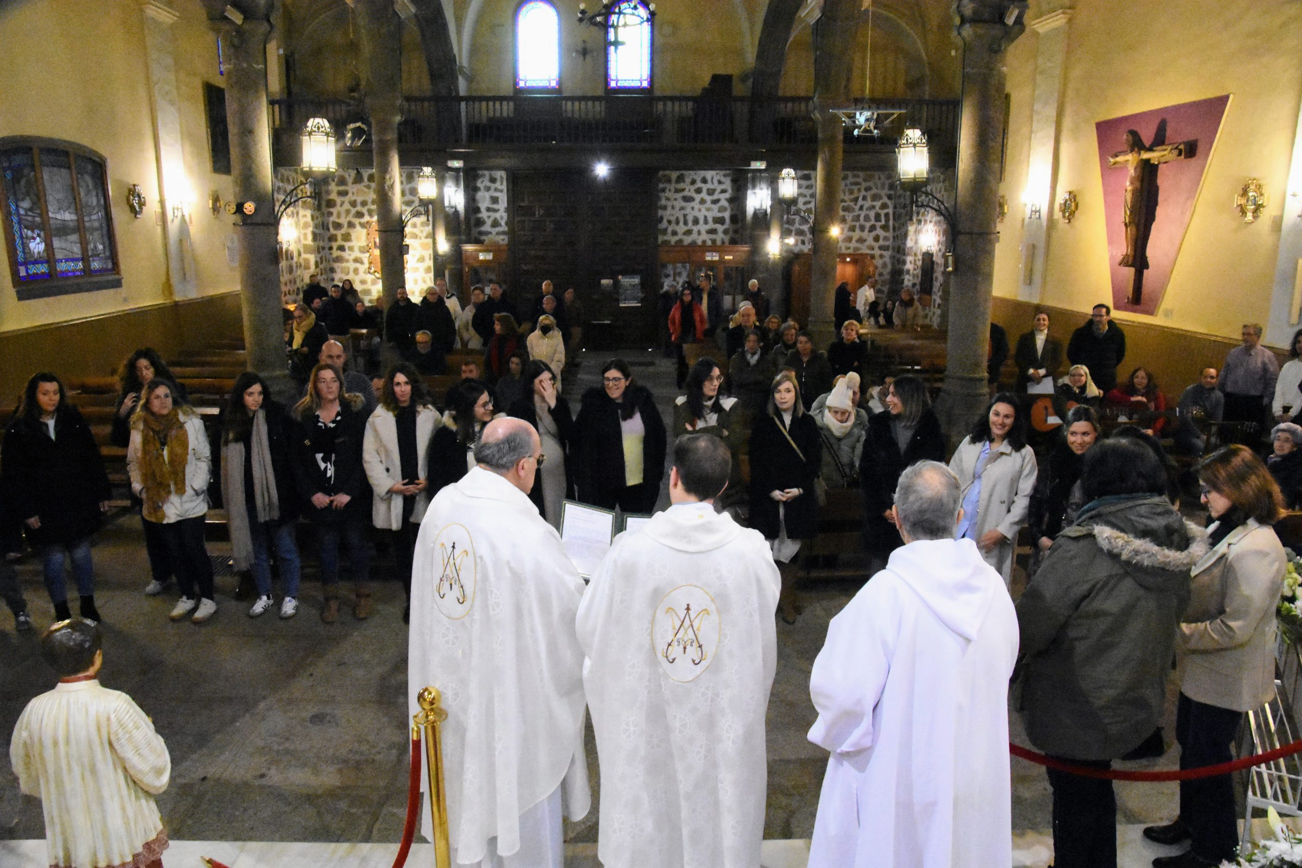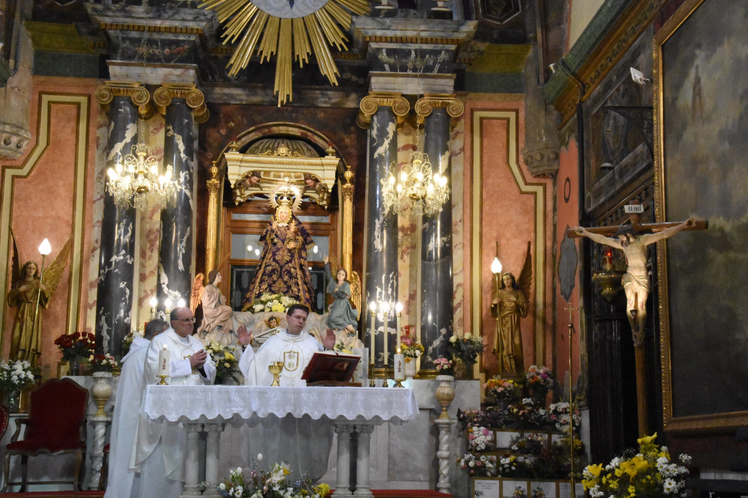 Al término de la Eucaristía, los padres pudieron subir al camarín de la Virgen, para ponerse bajo la protección de su manto.