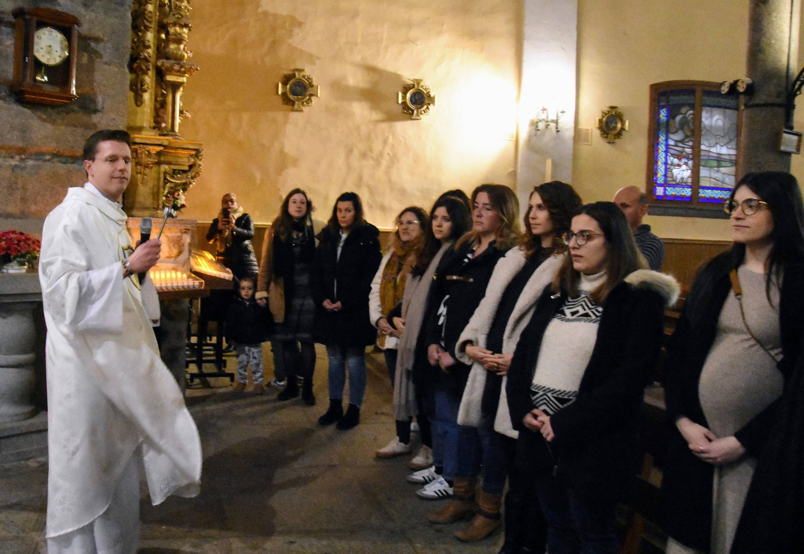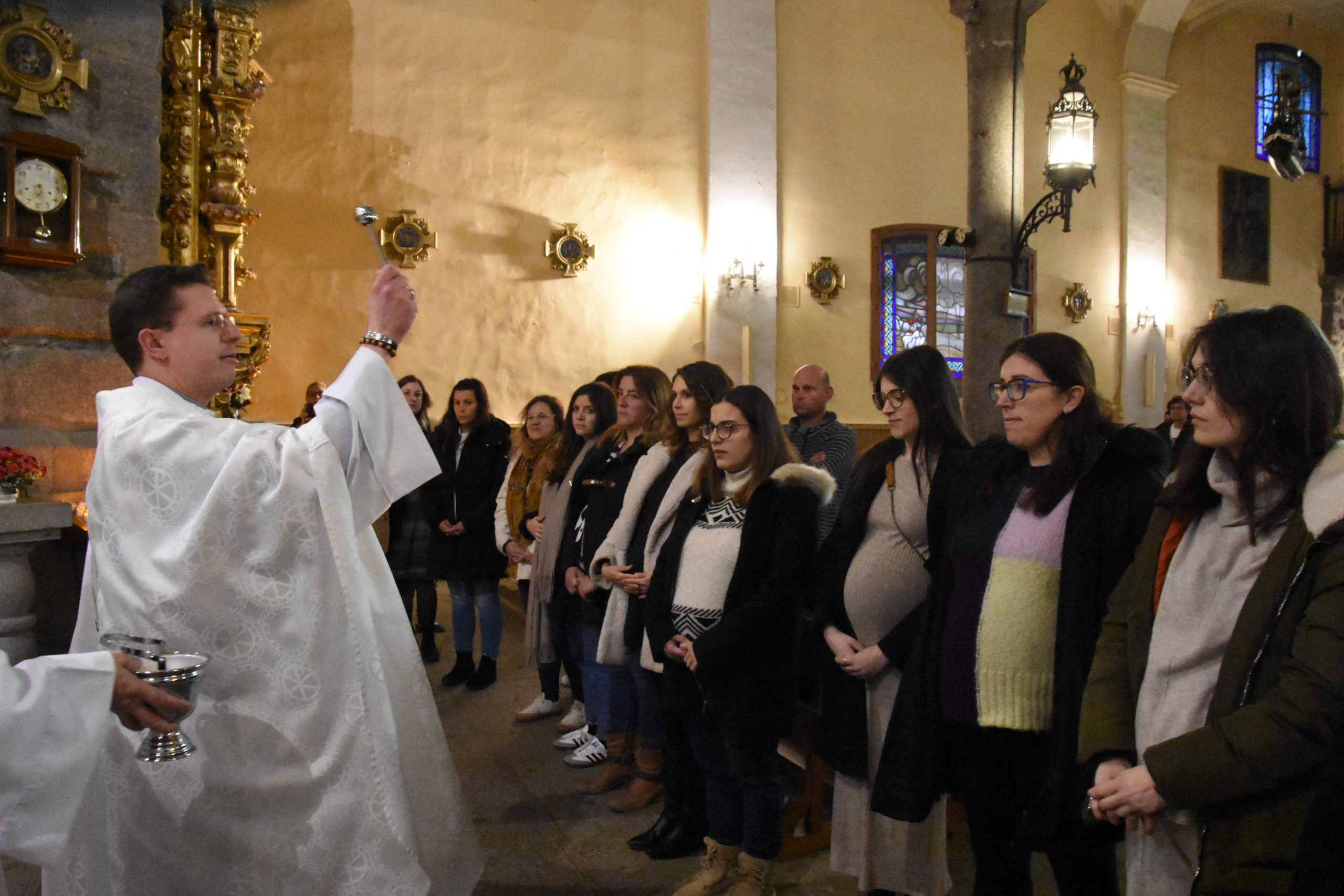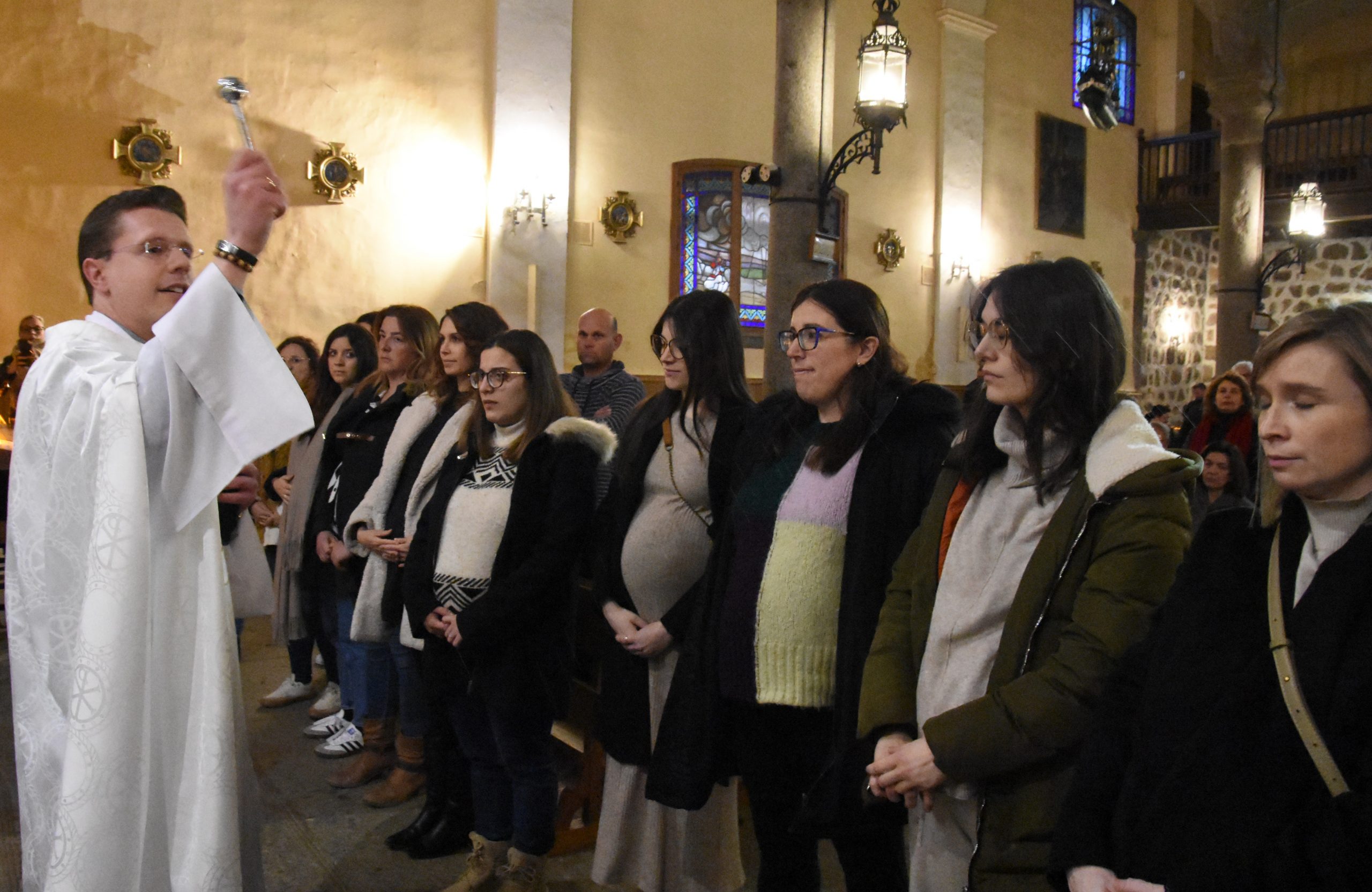 Nada menos que 17 mamás embarazadas se acercaron ayer martes al santuario diocesano de Nuestra Señora de Sonsoles para recibir la bendición para ellas y sus bebés. El emotivo acto, enmarcado en la fiesta de la Anunciación del Señor, fue presidido por el consiliario de Familia y Vida de la diócesis, el joven sacerdote Antonio Jiménez. Un precioso momento en el que quedó patente la alegría de engendrar nuevas vidas con amor, la protección y el cariño de unos padres, y la fe en Cristo.