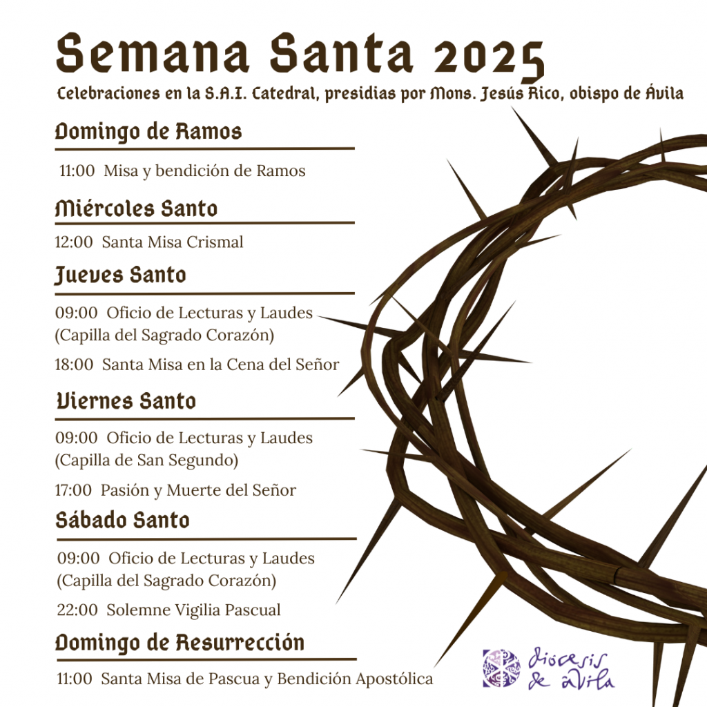 El próximo domingo, 13 de abril, es el comienzo litúrgico de la Semana Santa. Toda la Iglesia celebra de manera fervorosa estos días, haciendo memoria de la Pasión, muerte y Resurrección del Señor. Cada parroquia, cada santuario, cada convento de la diócesis prepara con esmero los cultos de estos días, cuyo horario pueden consultarlo directamente en cada templo.