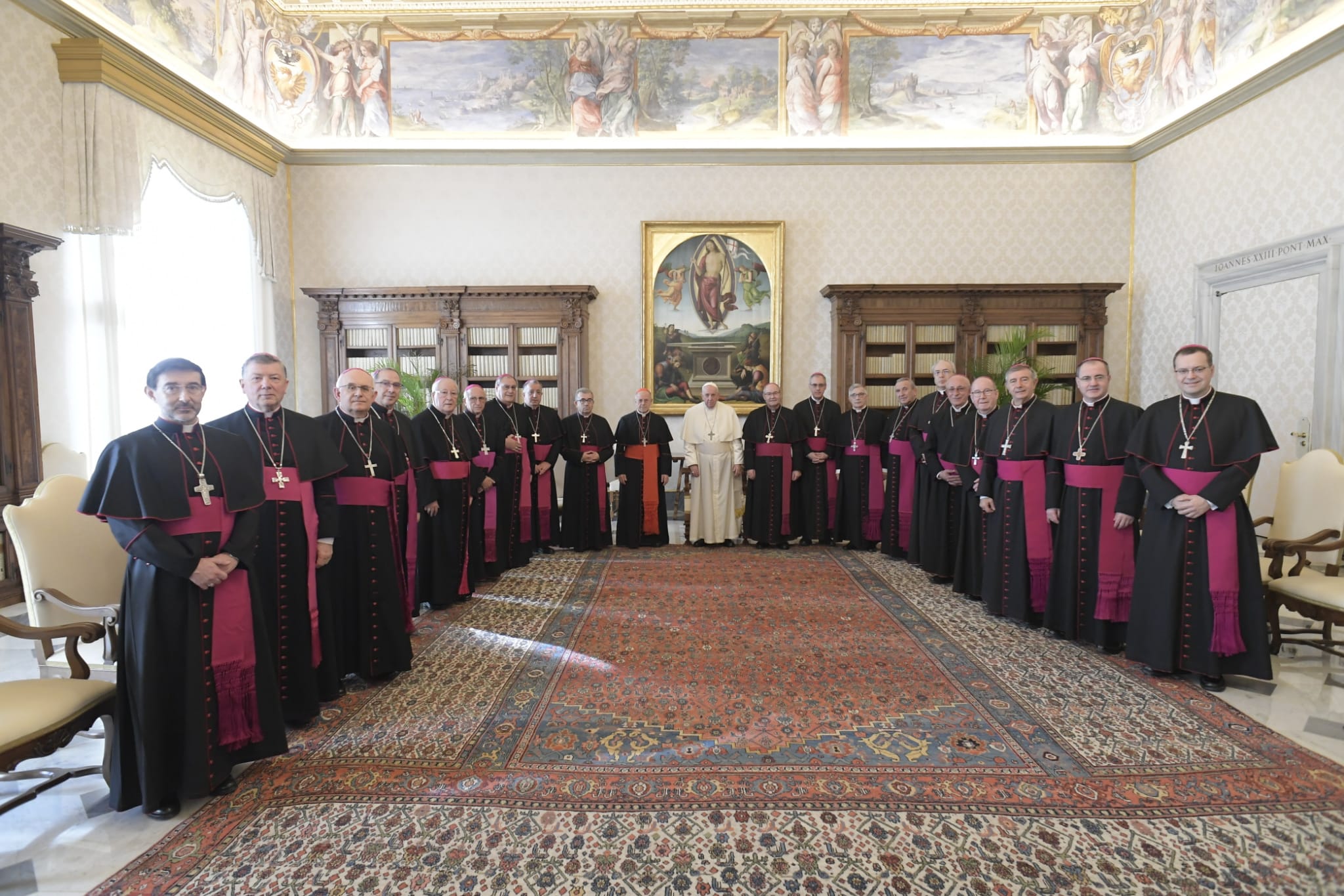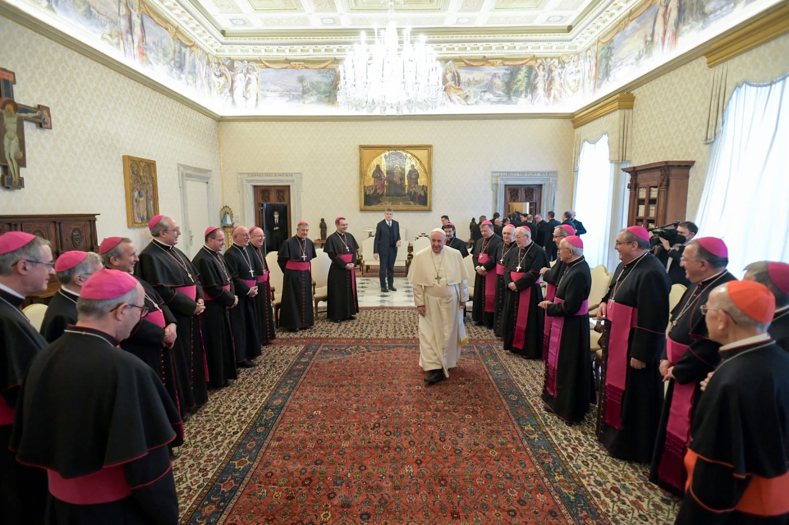 Este encuentro, convocado en la última semana de octubre, servía para dar cuenta del resultado de la visita apostólica a los seminarios españoles que tuvo lugar en el primer trimestre de 2023. De hecho, el Teologado de nuestra diócesis fue el primer punto de destino de los visitadores. Los obispos mantuvieron una extensa conversación con el Santo Padre sobre los seminarios y la formación necesaria.