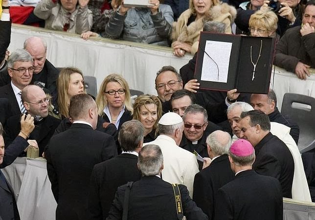 11 de marzo de 2015.- El Papa recibe el bastón de Santa Teresa: “¿La Vieja andaba con esto?”