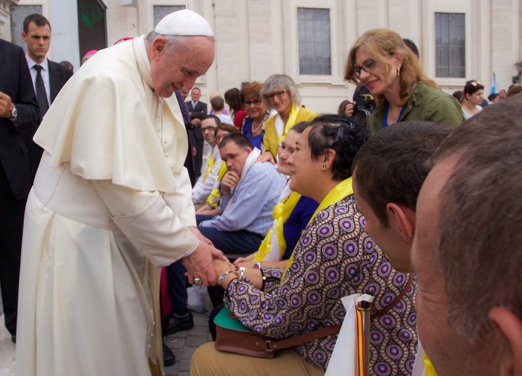 En un ambiente festivo y pastoral, Camino de Luz, la peregrinación que desde el 15 de octubre de 2014 llevaba el bastón original de Santa Teresa a 30 países en los 5 continentes, era recibida en este día por el Papa Francisco en el Vaticano. Los 4 peregrinos que hacen posible Camino de Luz, encabezados por el padre Antonio González, entregaban al Papa el bastón teresiano, que el Papa besó y sostuvo durante unos momentos mientras preguntaba en voz alta, y con el inconfundible deje argentino: ¿“La Vieja” andaba con esto?
