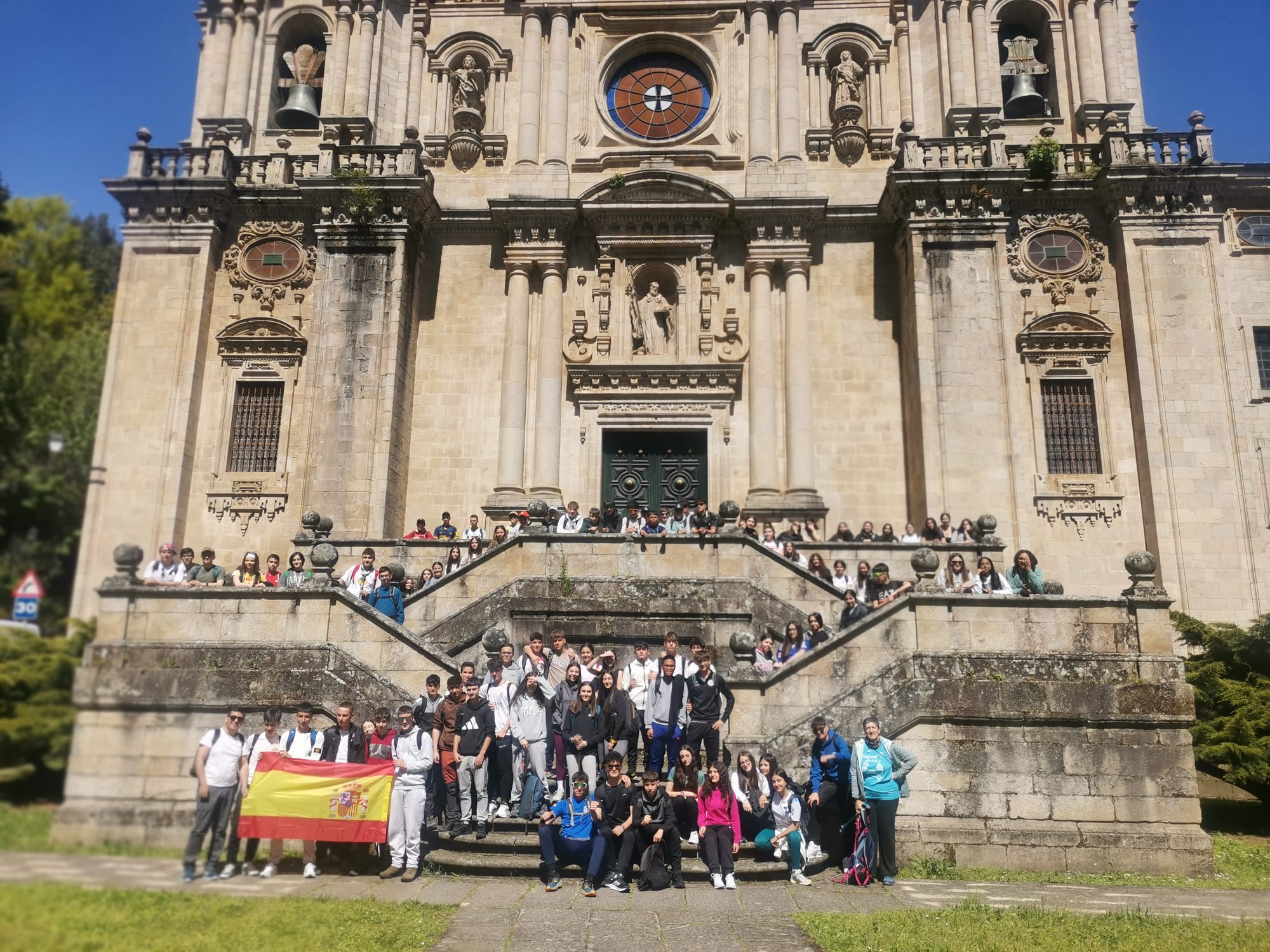 100 alumnos de religión de 3 y 4 ESO, de los IES Alonso de Madrigal, Jorge Santayana y Vasco de la Zarza de Avila y el IES, María de Córdoba de las Navas del Marqués, han realizado desde el miércoles 23 hasta ayer domingo día 27 de abril una peregrinación por el camino de Santiago, acompañados por 4 profesores de Religión y un sacerdote. Una experiencia muy positiva que lleva haciéndose desde hace 15 años y que cada año cuenta con más alumnos que desean peregrinar. Este domingo llegaron a la Plaza del Obradoiro, cansados, con ampollas, pero con el corazón lleno y tremendamente emocionados. Allí, en la Catedral de Santiago, participaron en la Misa del Peregrino, que escucharon en arameo, y vieron asombrados el manejo del botafumeiro.