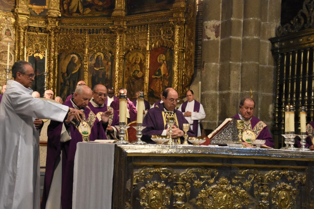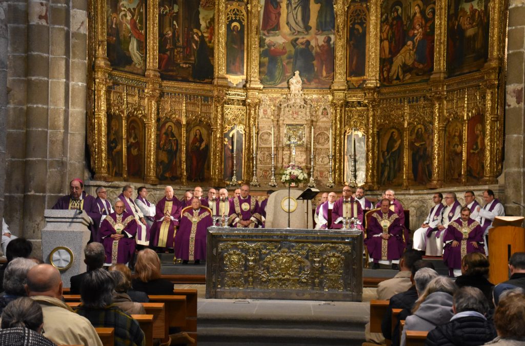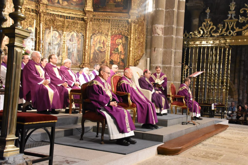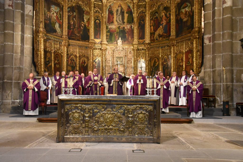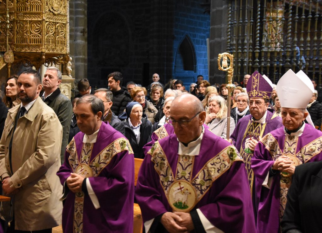 La catedral del Salvador de Ávila ha sido esta tarde escenario de una sentida eucaristía funeral por el eterno descanso del Papa Francisco, fallecido recientemente en Roma. La celebración, presidida por el obispo de la diócesis, Mons. Jesús Rico, y concelebrada por el obispo emérito, Mons. Jesús García Burillo, junto a numerosos sacerdotes abulenses, congregó a centenares de fieles que llenaron por completo la nave central del templo.