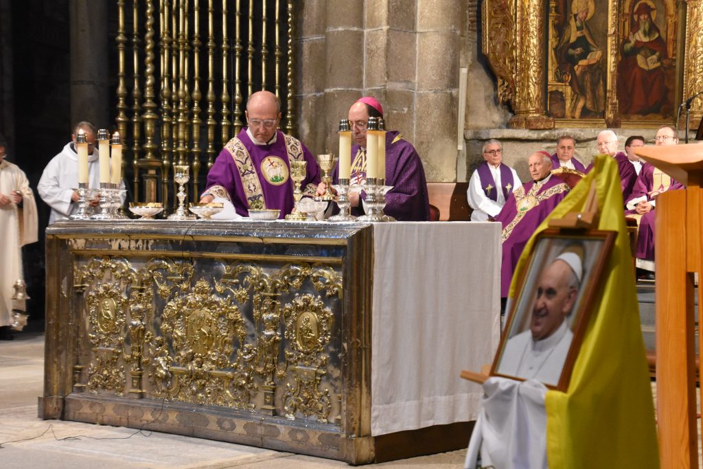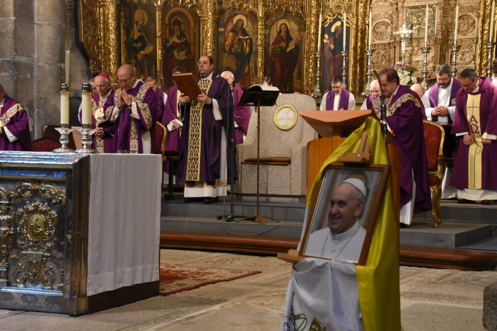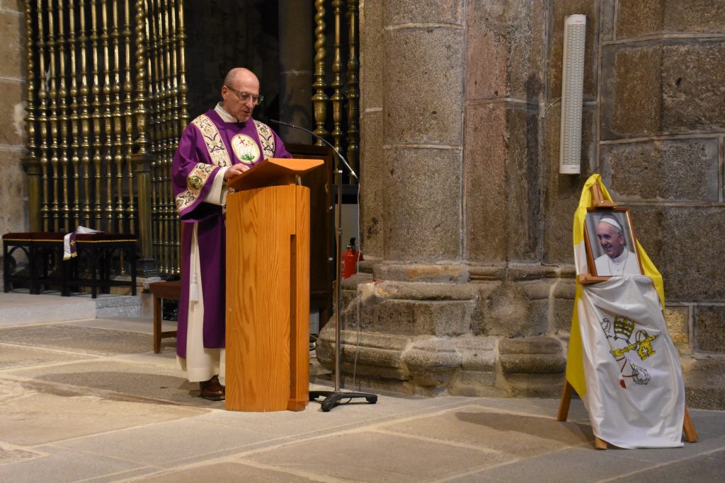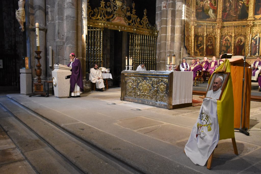 Antes de concluir la homilía, Don Jesús quiso de nuevo dar gracias a Dios «por la vida del Papa Francisco, por sus gestos callados y su palabra clara, por habernos ayudado a ir por la senda del Evangelio con alegría, orientándonos solo a lo esencial de nuestra fe, por su ejemplo de vida entregada, por su incansable trabajo, la paz en el mundo y la fraternidad». Sus palabras concluyeron con una oración serena y confiada por el alma del Papa Francisco. “Le confiamos al Padre con la seguridad de que ya ha escuchado de sus labios aquellas palabras que todos anhelamos: ‘Siervo bueno y fiel, entra en el gozo de tu Señor’”, expresó el obispo con voz conmovida.
