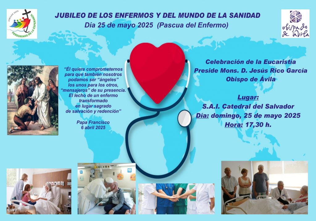 La Diócesis de Ávila, a través de la Pastoral de la Salud, anuncia con alegría que el próximo domingo 25 de mayo se celebrará en la S.A.I Catedral del Salvador, el Jubileo de los Enfermos y del mundo de la sanidad. Se ha hecho coincidir este momento jubilar tan importante con la Pascua del Enfermo (que tradicionalmente se celebra en toda la Iglesia española el VI domingo de Pascua).