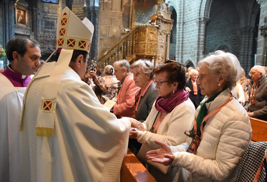 Uno de los momentos más emotivos de la tarde fue la administración del sacramento de la Santa Unción a 40 personas, que lo recibieron de manos del propio obispo, en un gesto de consuelo, fortaleza y comunión con toda la Iglesia. Uno de los primeros en recibir este sacramento fue el obispo emérito de Ávila, Mons. Jesús García Burillo, quien estuvo concelebrando la Eucaristía en el altar.
