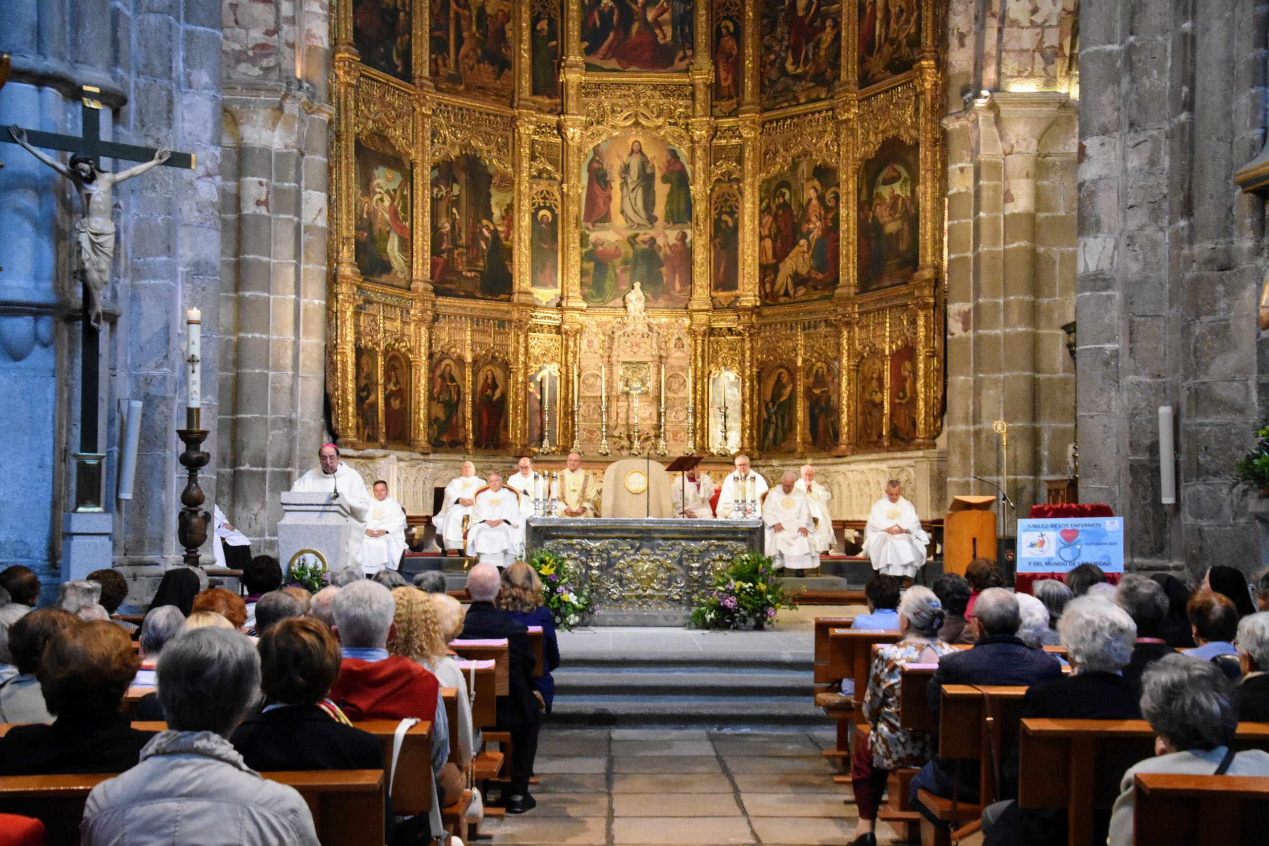 La Catedral de Ávila acogió en la jornada de ayer domingo la celebración del Jubileo de los Enfermos y del mundo de la sanidad, enmarcado en el Año Santo que vive toda la Iglesia universal. La ceremonia estuvo presidida por el obispo de Ávila, Mons. Jesús Rico García, y contó con una amplísima participación de fieles, entre los que se encontraban enfermos, agentes sanitarios, familiares y voluntarios de la Pastoral de la Salud. Entre ellos, un importante grupo de jóvenes de la Hermandad de la Esperanza, quienes han empezado una colaboración especial con la Pastoral de la Salud de la diócesis en el acompañamiento de nuestros enfermos, de quienes estuvieron muy pendientes ayer durante toda la celebración.