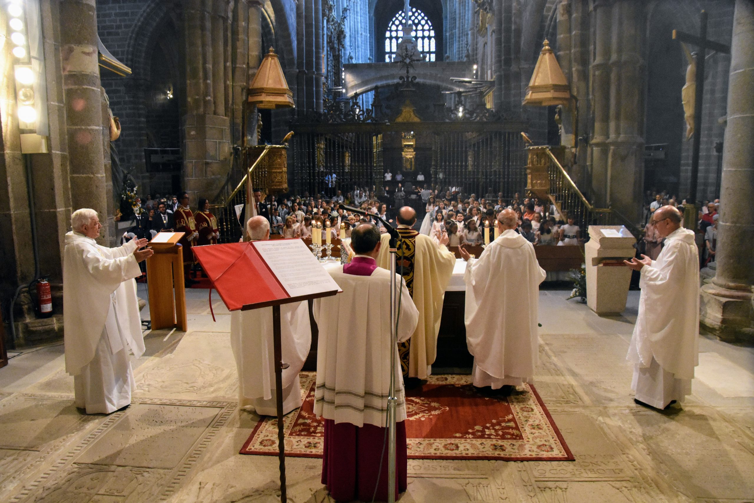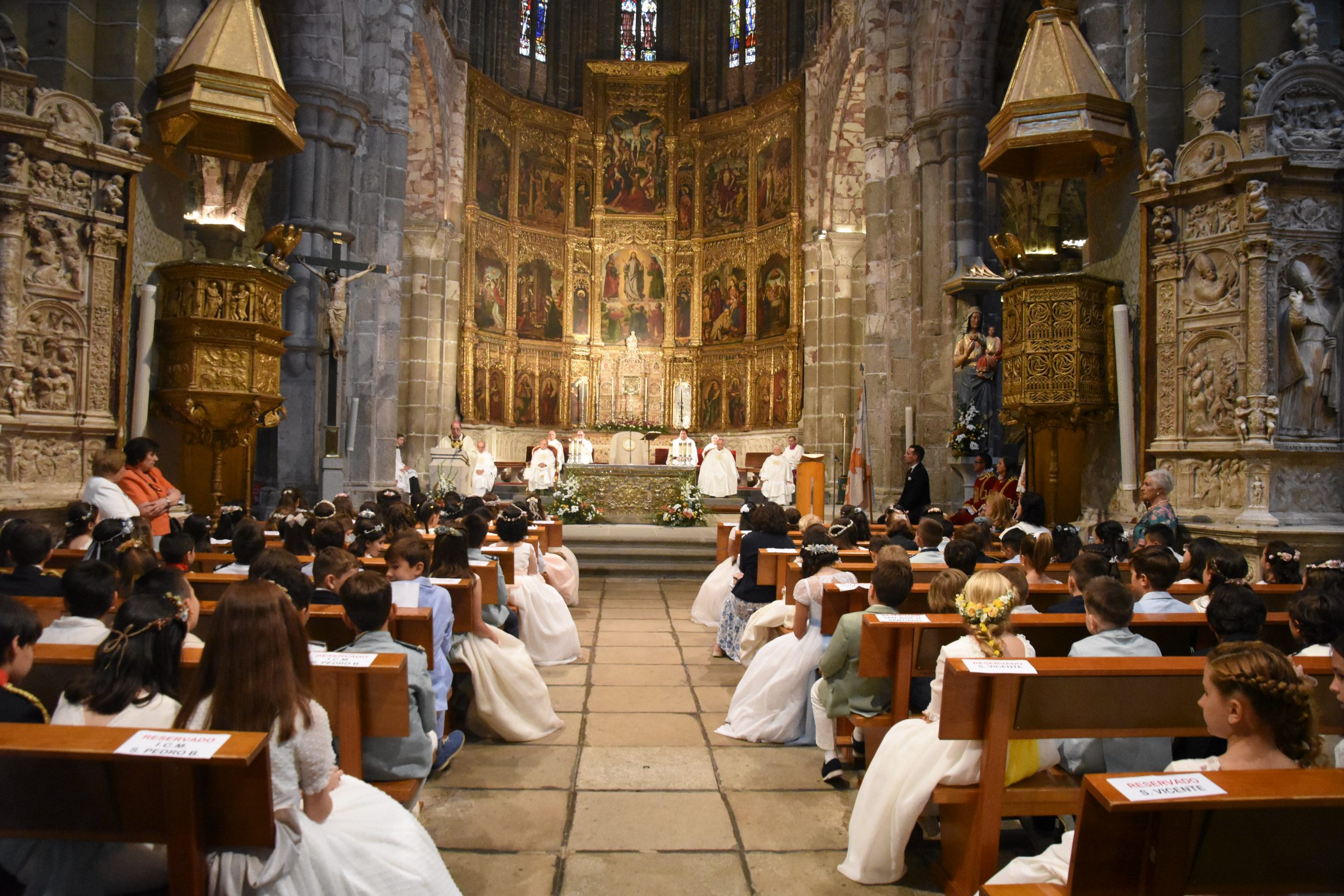 Más de mil personas abarrotaban la Catedral del Salvador para asistir a la Eucaristía, presidida por el obispo de Ávila, Mons. Jesús Rico García. Concelebraban con él el arzobispo emérito de Valladolid, el Cardenal Ricardo Blázquez, y el obispo emérito de Ávila, Mons. Jesús García Burillo, además de numerosos sacerdotes diocesanos. Una celebración especialmente emotiva por la presencia numerosa de niños que este año han recibido su Primera Comunión, acompañados por sus familias.