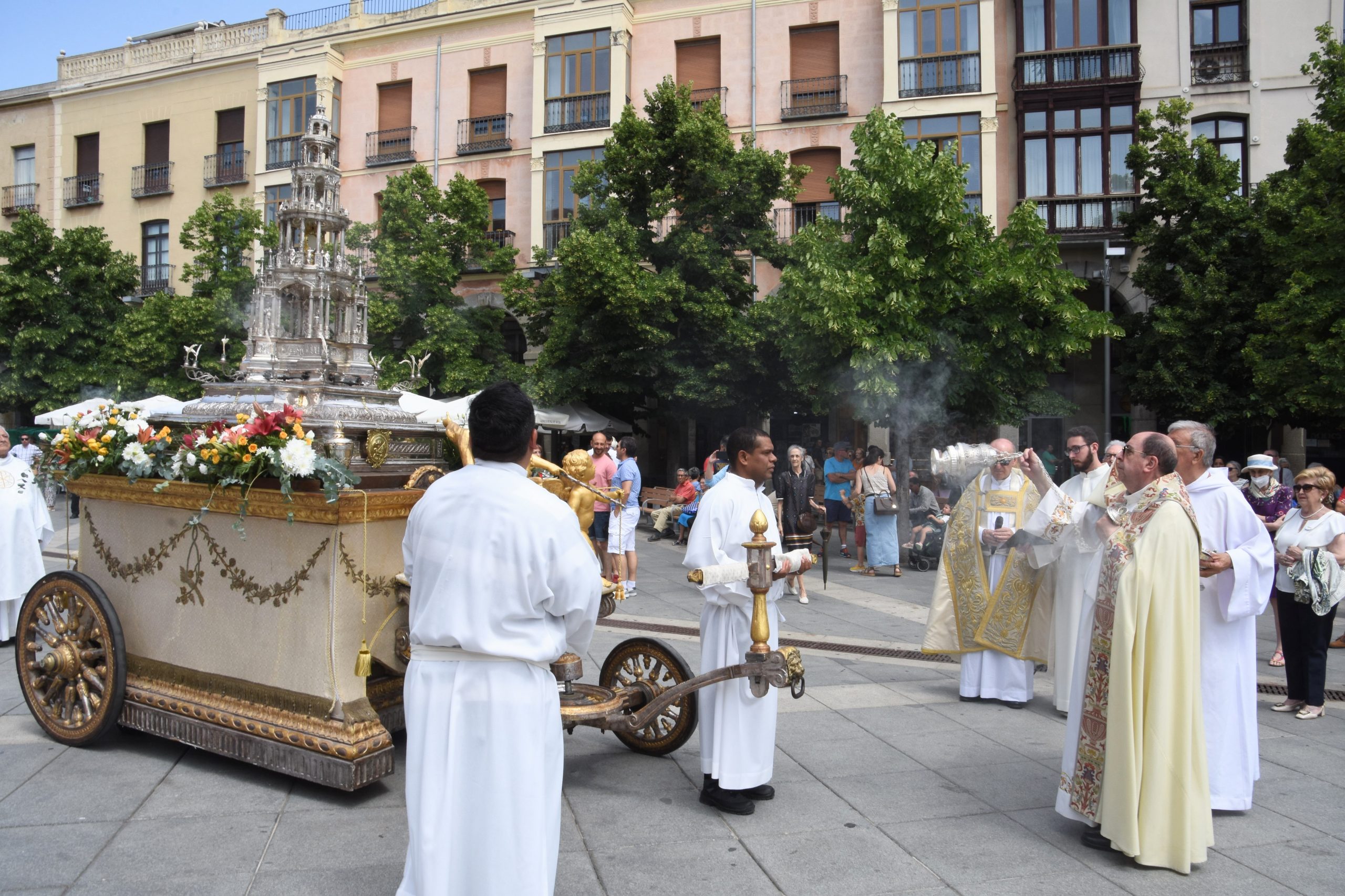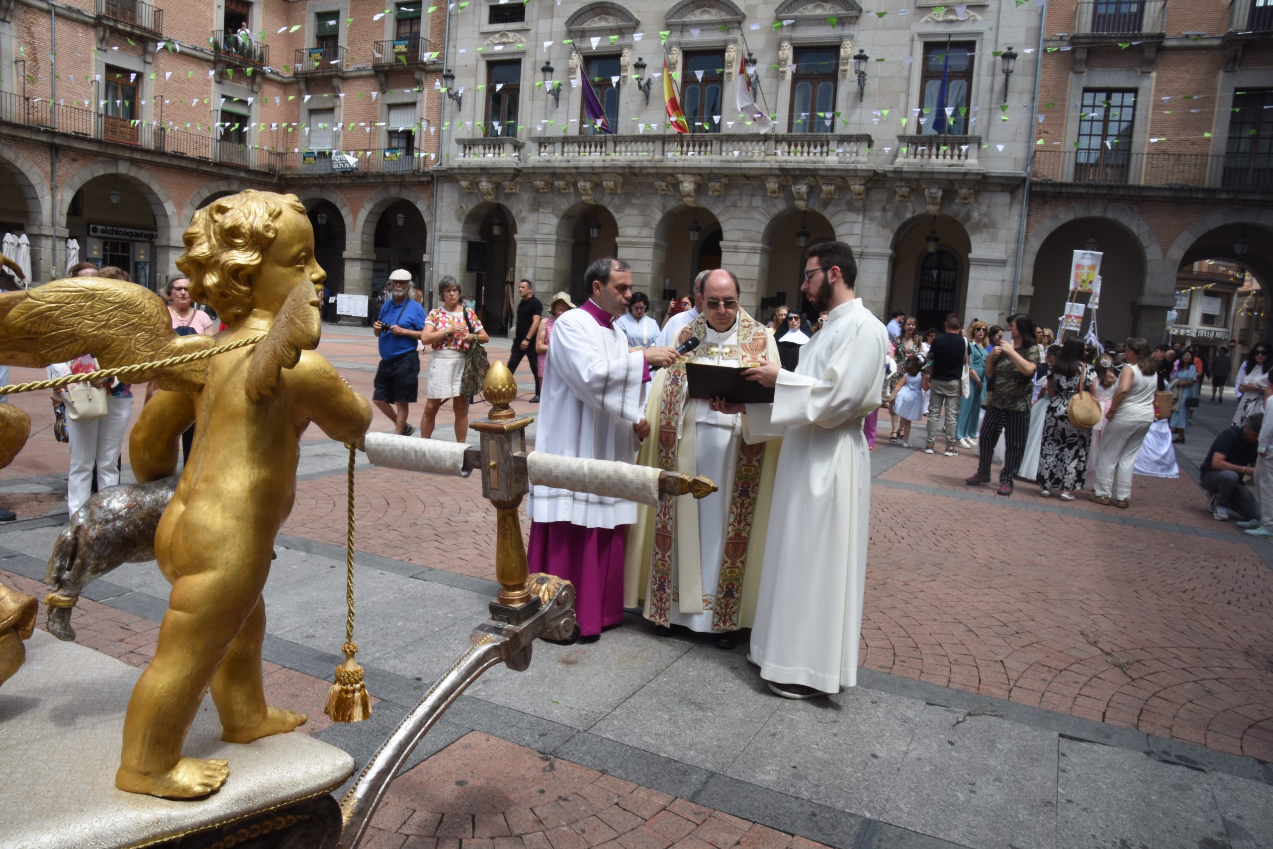 Finalizada la Misa, la procesión del Santísimo recorrió las calles del centro histórico de Ávila, en un ambiente de recogimiento, adoración y calor humano y físico. El pueblo creyente se postró ante Aquel que, hecho Pan, quiso salir al encuentro de todos, como cada año, desde el corazón de la Iglesia hacia el corazón del mundo. Dos momentos de adoración pública, y el paso por cuatro altares para honrar el paso del Cuerpo de Cristo fueron los momentos más destacados de una procesión que concluyó con la bendición que impartió Mons. Rico con el Santísimo en la plaza de la Catedral.