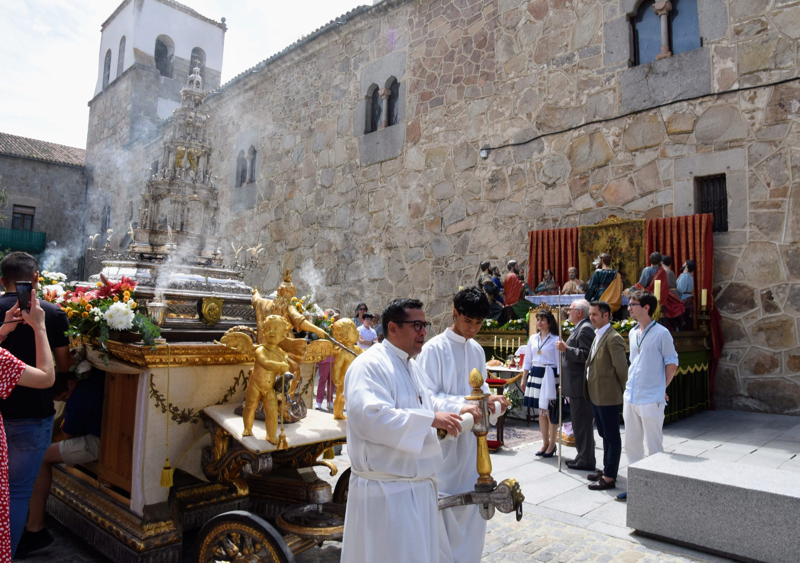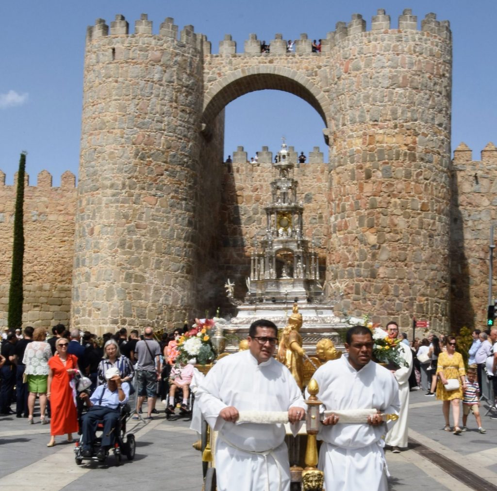 La ciudad de Ávila se ha vestido este domingo de solemnidad para celebrar con fervor la fiesta del Corpus Christi, uno de los días más destacados del calendario litúrgico. Aunque el cielo amanecía encapotado y las previsiones apuntaban a una posible lluvia, finalmente el sol se impuso con fuerza y convirtió la jornada en un día de calor sofocante, totalmente veraniego, que no impidió la participación masiva de los fieles.