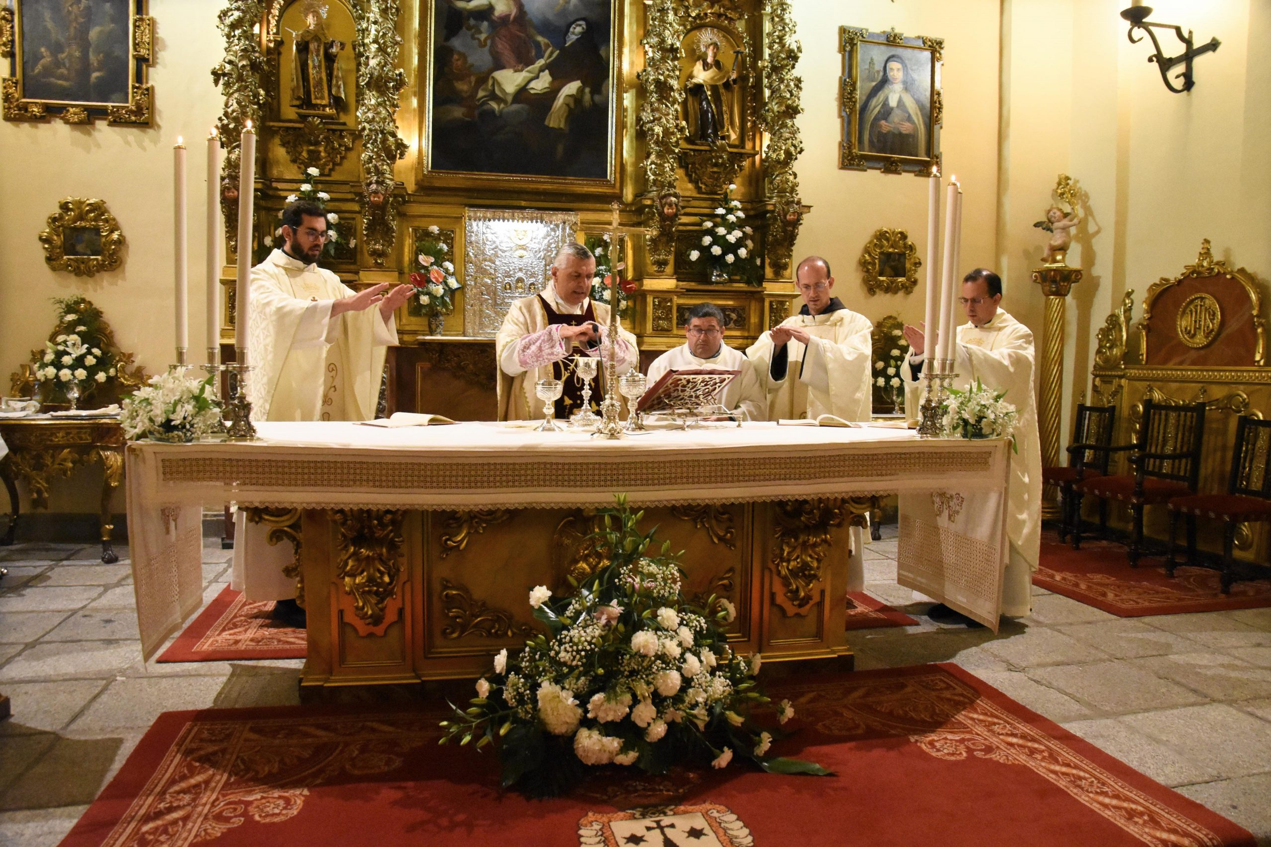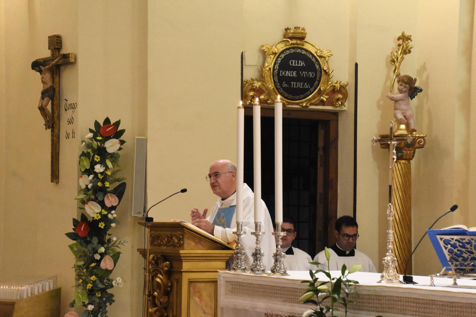 Por ello, desde la semana pasada, esa misma capilla de La Encarnación ha estado acogiendo un solemne Decenario, que ha estado presidido cada día por diferentes presbíteros (entre ellos, el provincial de los Carmelitas en España, el Padre Francisco Sánchez Ojeda), y varios arzobispos, obispos y cardenales: el arzobispo de Toledo (Mons. Francisco Cerro), el obispo auxiliar de Madrid (Mons. Martínez Camino), el Cardenal arzobispo emérito de Valladolid (Mons. Ricardo Blázquez), y nuestro obispo Don Jesús. Hoy martes se completará este Decenario en la fiesta de la Transverberación con la Eucaristía que presidirá el obispo emérito de Córdoba. Mons. Demetrio Fernández, a partir de las 20 horas.