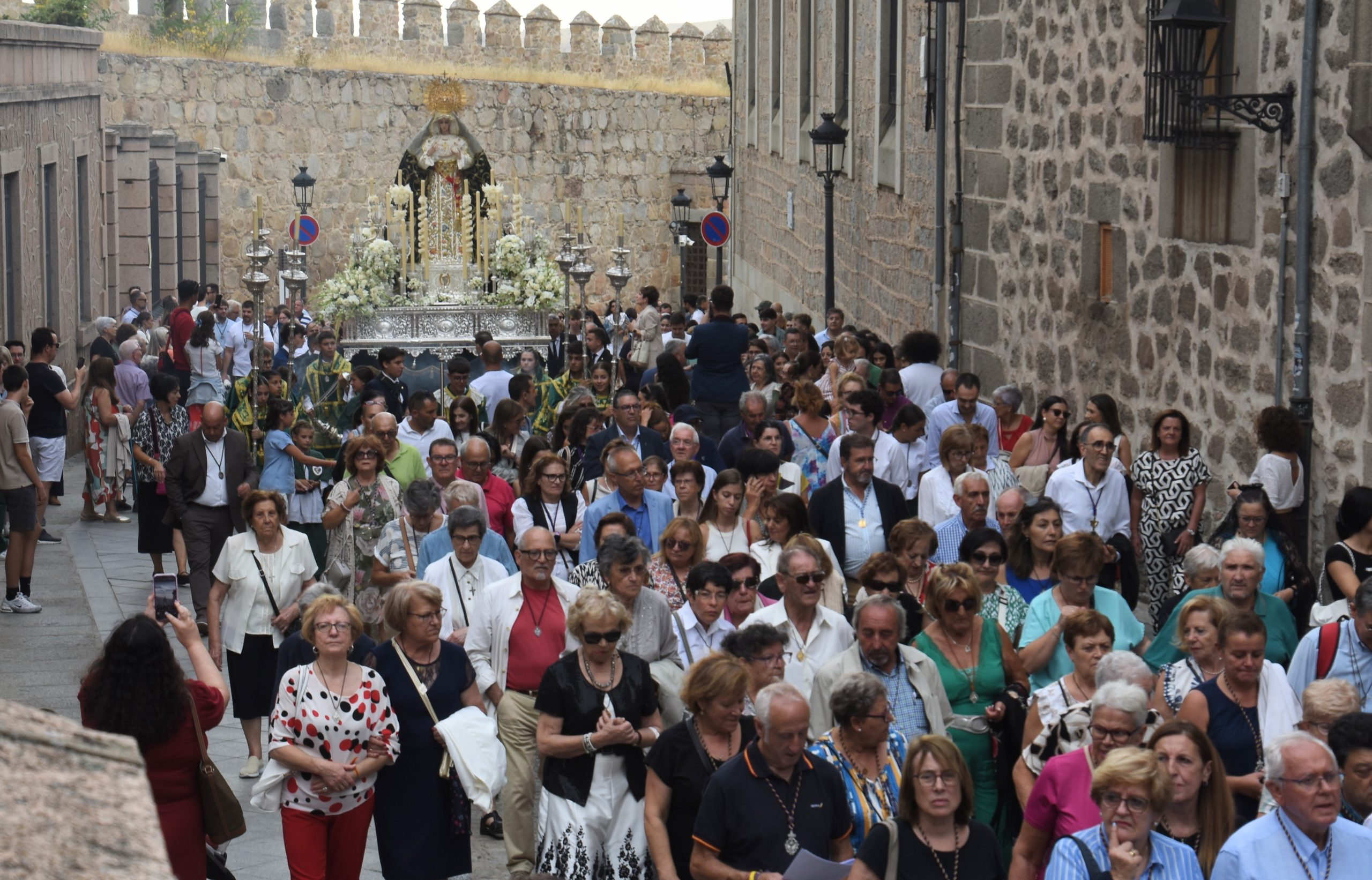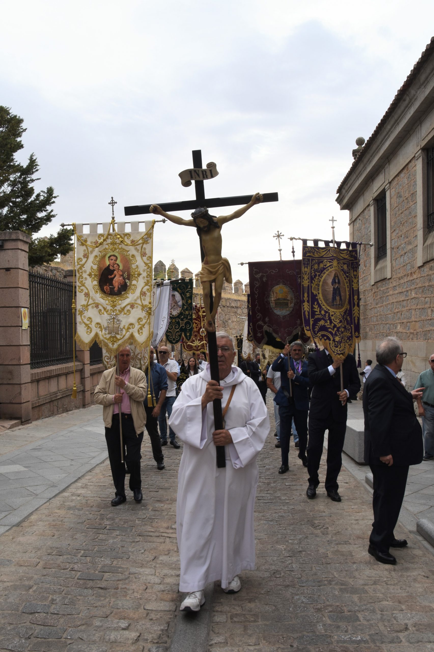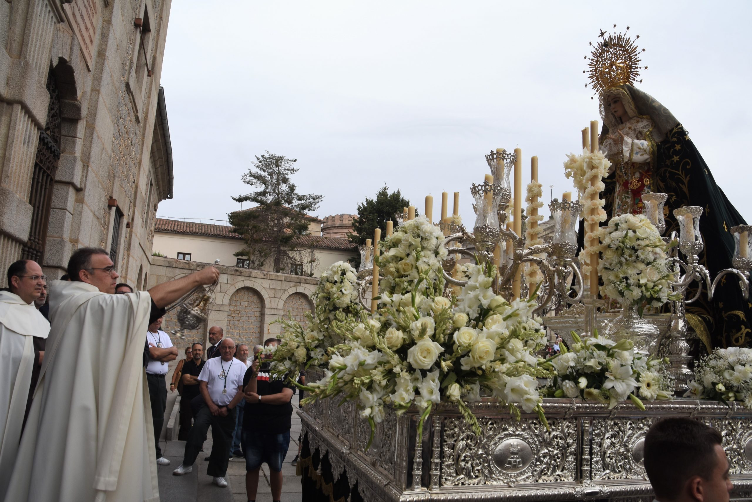 Arrancaba la tarde en la Basílica de Santa Teresa, con un detalle tan inesperado como hermoso: la salida a la puerta de su casa de la Patrona de Ávila, para acoger y saludar a la imagen de Nuestra Señora de la Esperanza, que acompañaba a los cofrades durante su peregrinación al templo jubilar. Un recorrido que se hacía calmado y pausado, centrado en los cantos y las letanías que daban un significado profundo a ese peregrinar que debe ser nuestra actitud como cristianos.